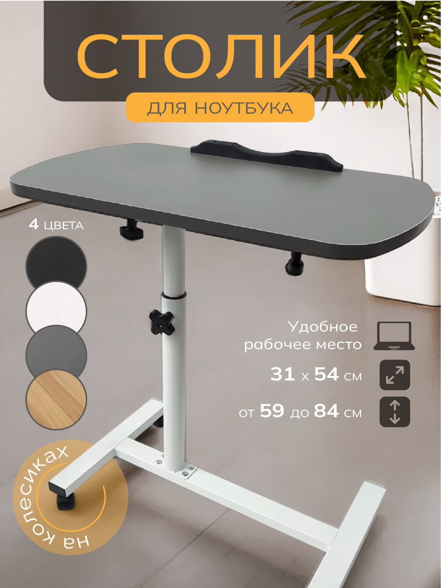 Столик для ноутбука WELHOME складной прикроватный на колесиках, серый интересное: