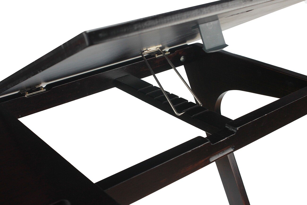 | Дополнительная информация | оригинальный деревянный столик со столешницей размером 60х35 см; столешница частично регулируется, всего доступно 5 вариантов угла наклона; имеется специальный ограничитель для удержания ноутбука под углом; универсальная модель подходит для чтения, подачи завтрака, как детский столик и т.д.; разборная конструкция, в комплект входит все необходимое для сборки. |