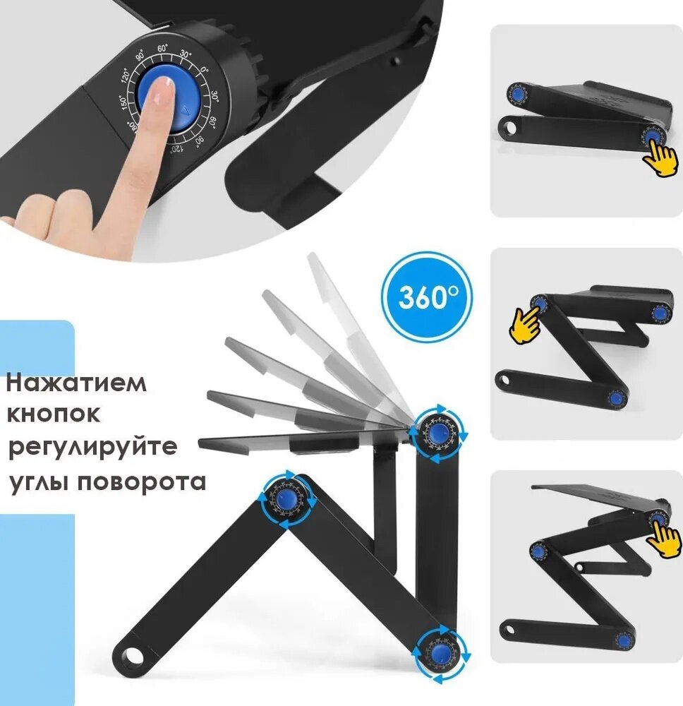 Купить Подставка для ноутбука складная с вентиляторами/Стол трансформер для ноутбука с охлаждением/Многофункциональная подставка для ноутбука
