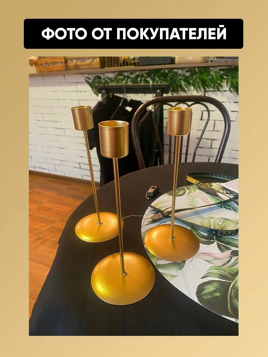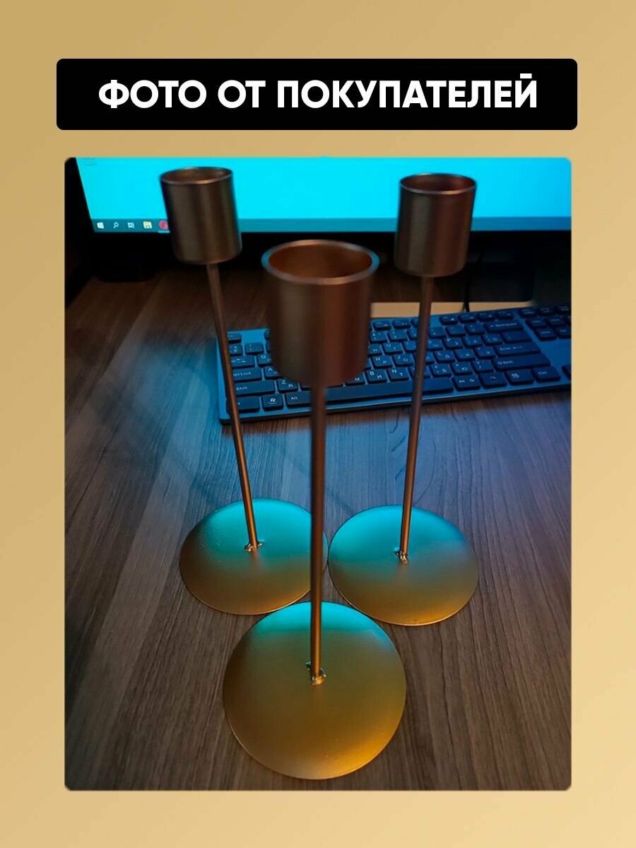 Подсвечник металлический золотой набор для интерьера 3 шт интересное: