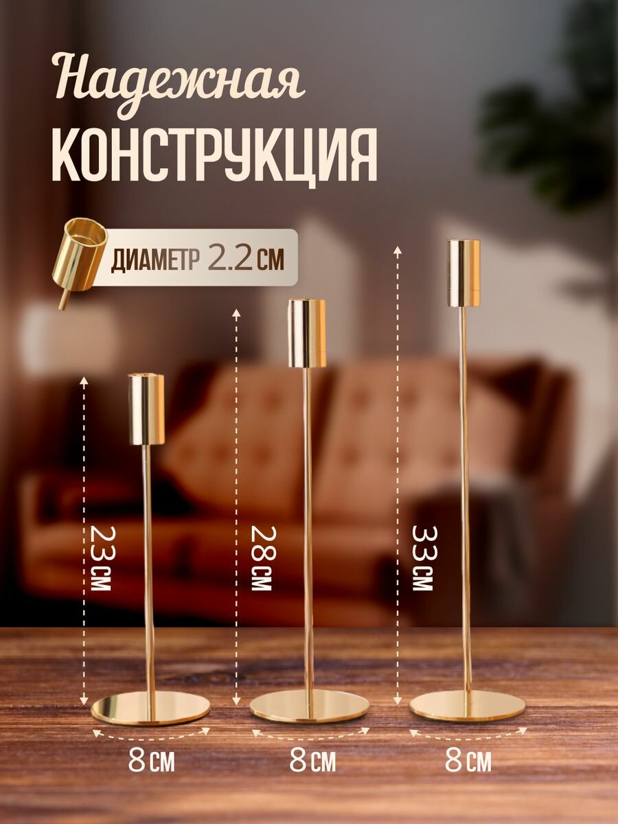 Подсвечники металлические золотые набор из 3 штук интересное: