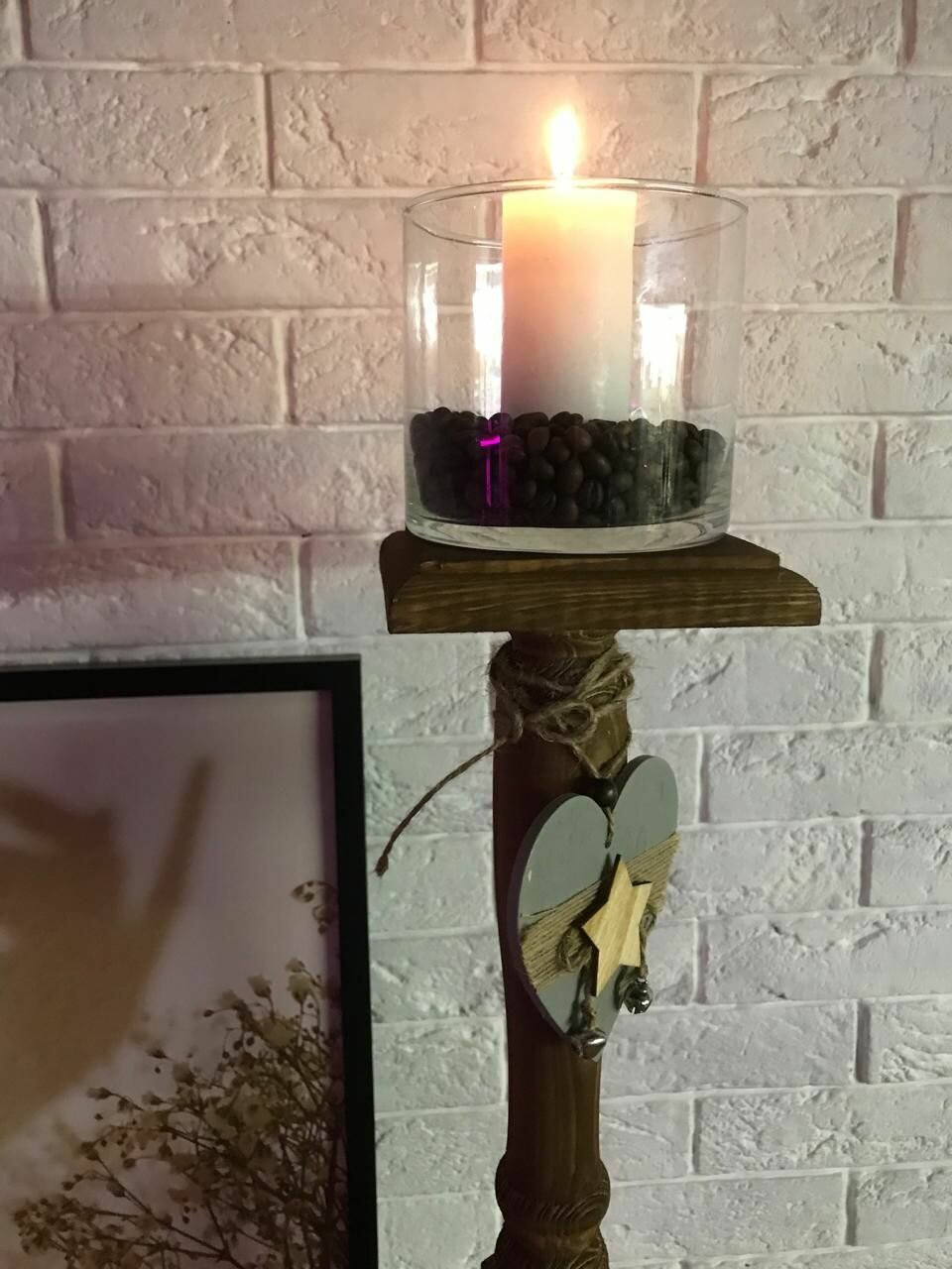 Подсвечник деревянный высокий, темное дерево 52 см интересное: