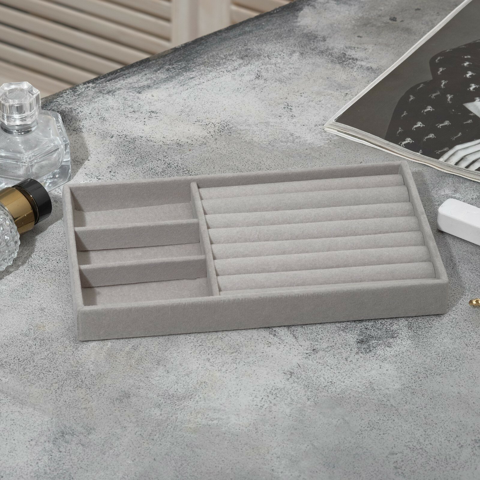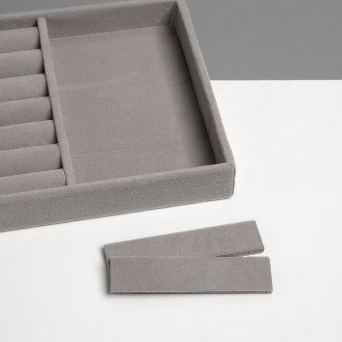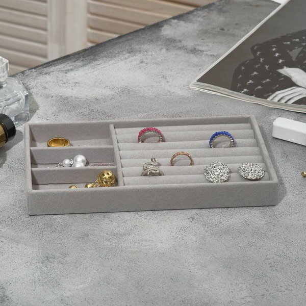 Подставка для украшений Queen fair 3 ячейки и 7 полос для колец, флок, 21х12,3х2,5 см, цвет серый