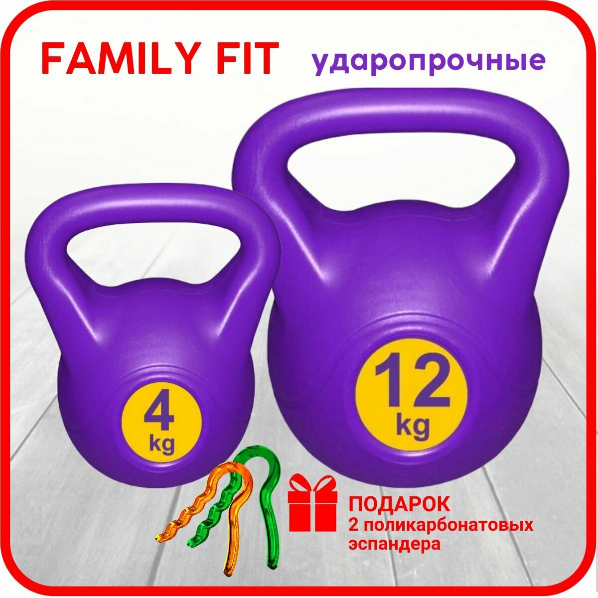 Купить Комплект Family Fit гиря LECO 12 кг + гиря LECO 4 кг + эспандер Pro + эспандер Starter