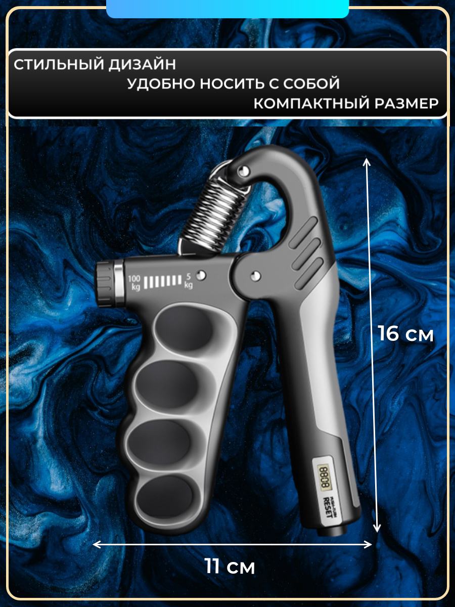 Эспандер кистевой, нагрузка 10-100 кг, черный, со счетчиком регулируемый пружинный для фитнеса рук, Maxintro интересное: