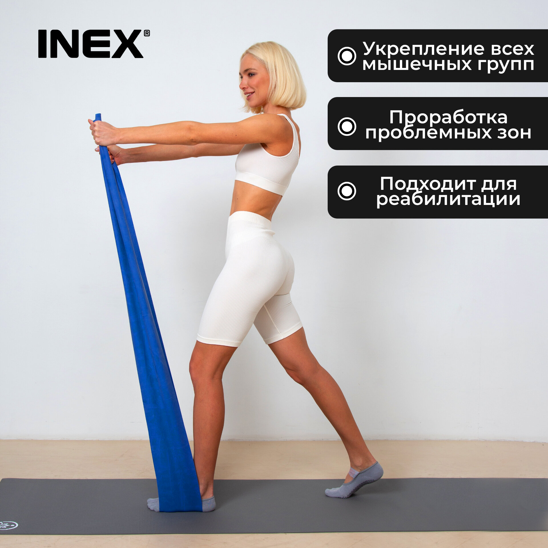 Фитнес резинка / Лента для пилатеса INEX Body-Band, длина 2,5 м, высокое сопротивление, синий интересное: