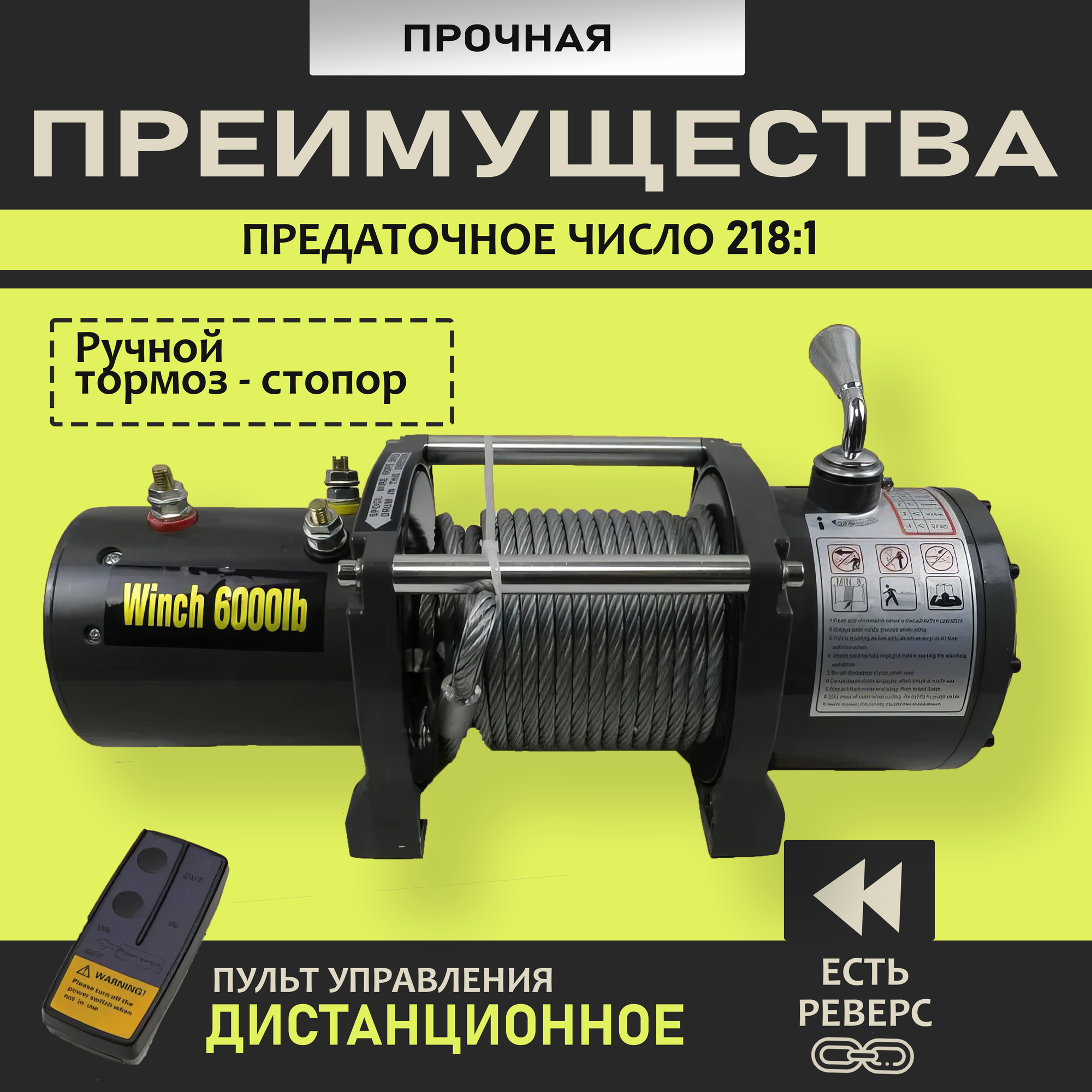Электролебедка со стальным тросом Electric Winch 12V 6000lbs с грузоподъемностью 2722 кг интересное: