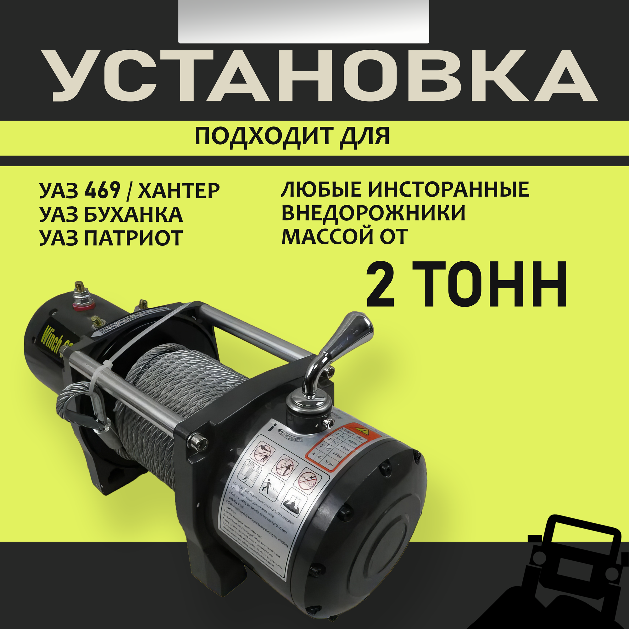 | Дополнительная информация | При выборе автолебедки обратите внимание на тяговое усилие и вольтаж, приобретайте лебедку с запасом по тяговому усилию. |