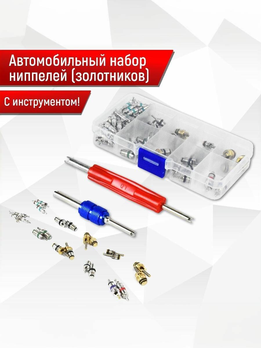 СохранитьНабор ниппелей (золотников) 100 шт, 9 видов, для сервисных заправочных портов автомобильных кондиционеров и авторефрижераторов. интересное: