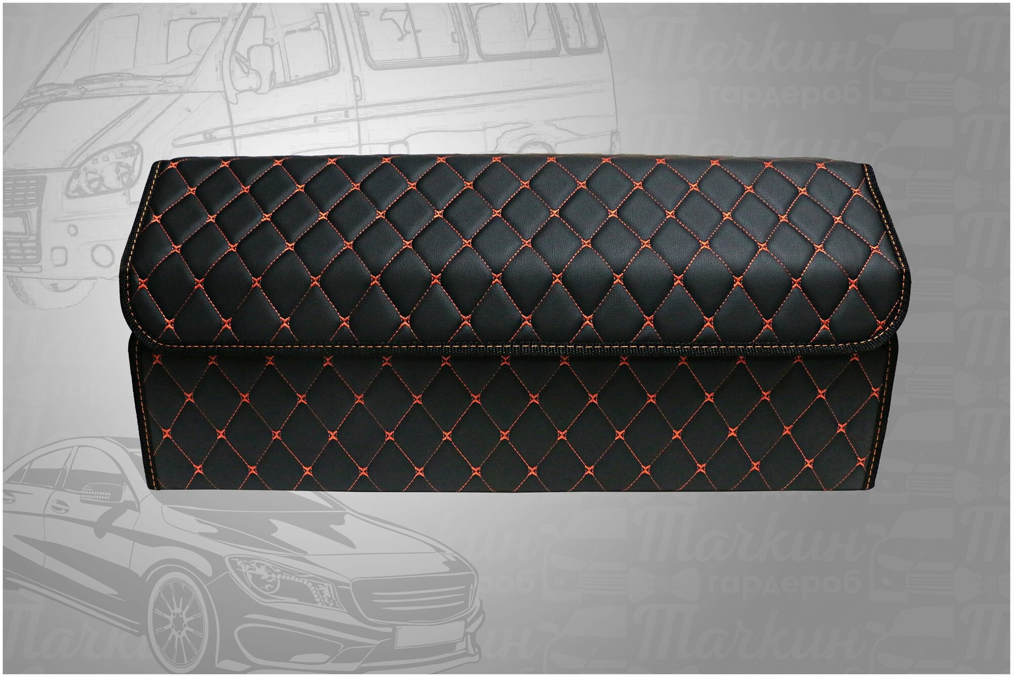 Аксессуары для авто/Органайзер в багажник 70х30х30 рисунок фигурный ромб черный/строчка красная