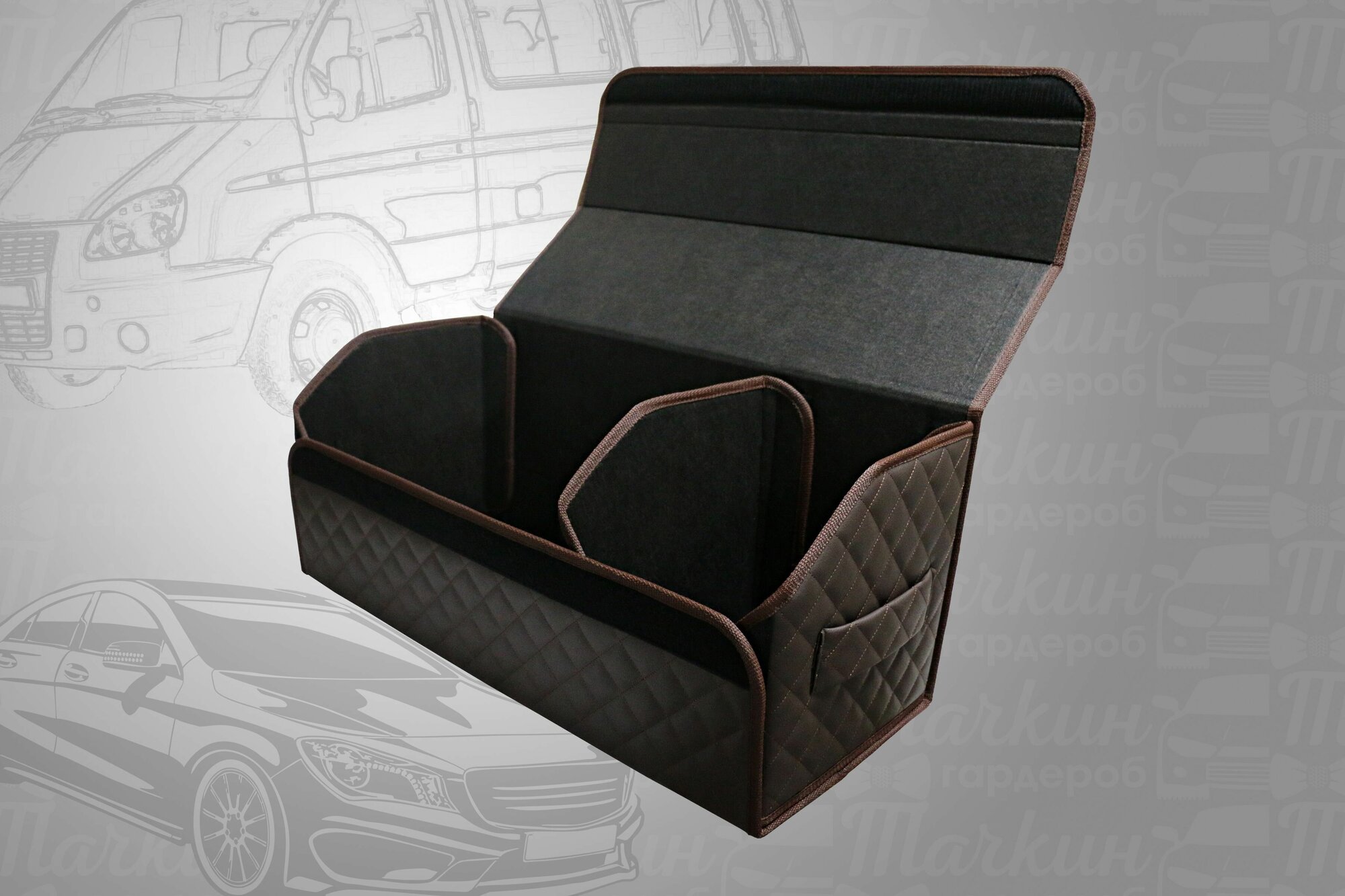 Купить Аксессуары для авто/Органайзер в багажник 70*30*35 квадрат коричневый/ строчка коричневая/черн