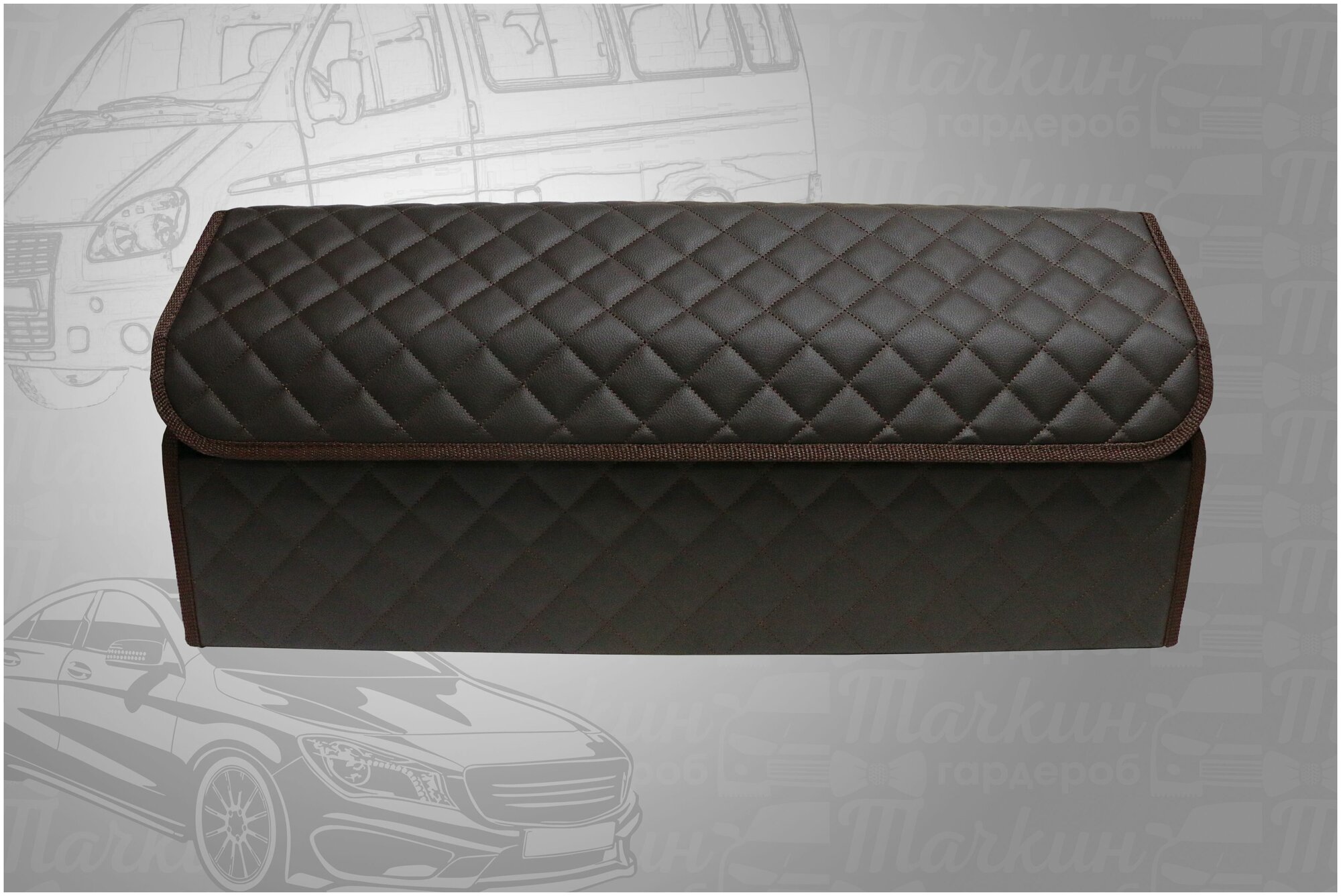 Купить Высокий Саквояж из экокожи в багажник авто премиум-класса/ Органайзер 70*30*35 квадрат коричневый/ строчка коричневая/корич