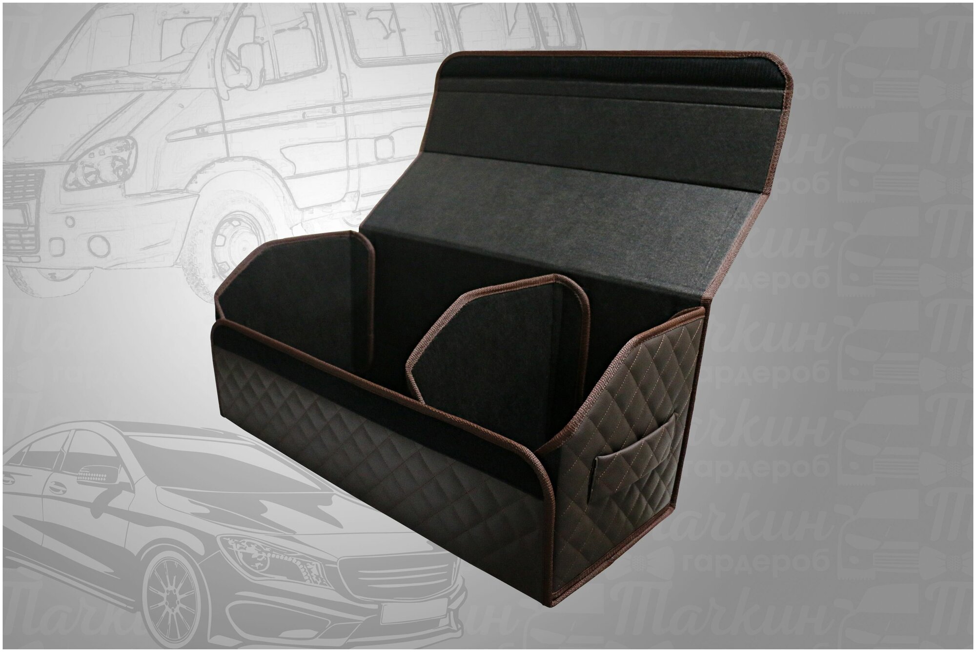 Аксессуары для авто/Органайзер в багажник 70*30*35 квадрат коричневый/ строчка коричневая/черн
