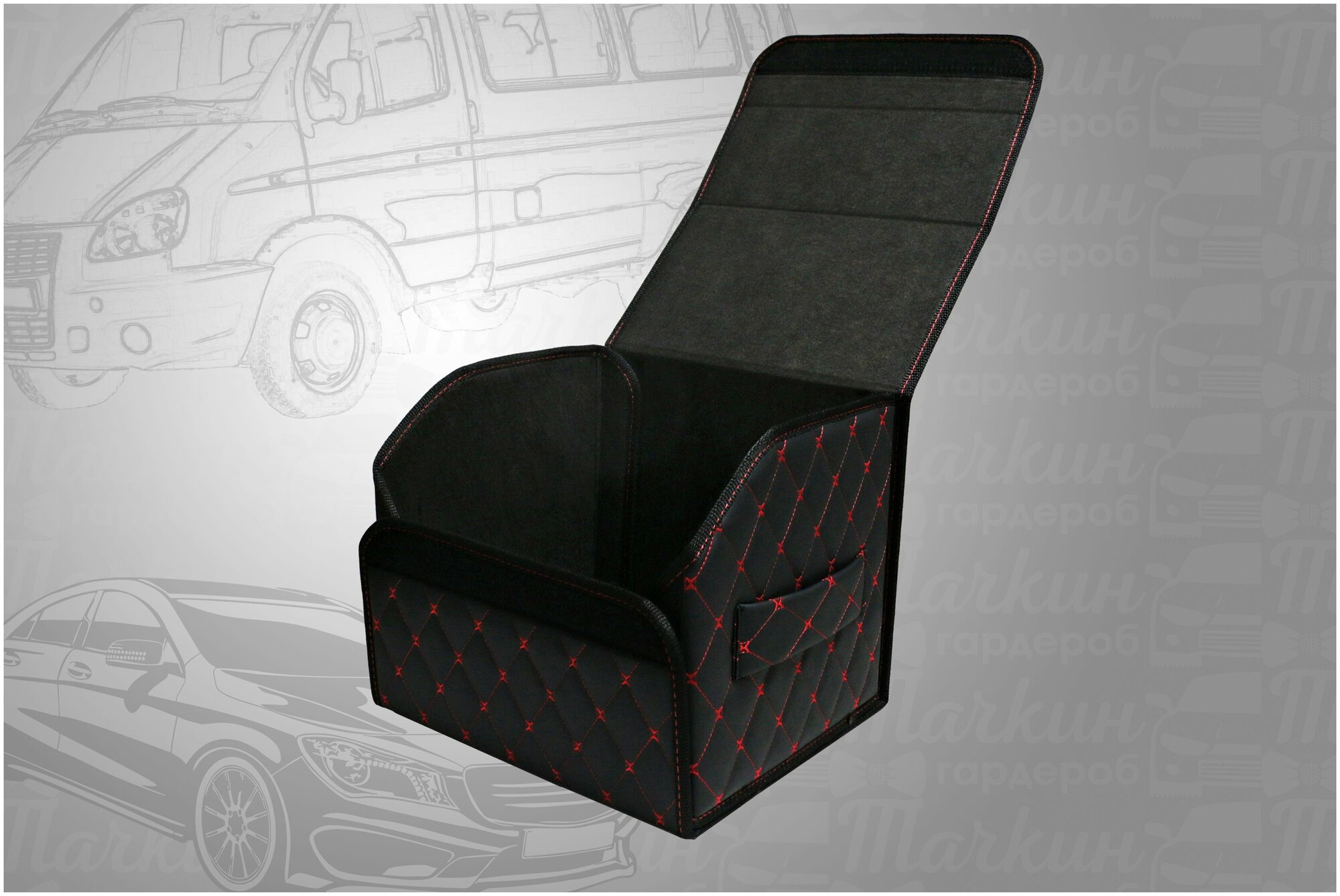 Органайзер для хранения в автомобиль 50х30х30 рисунок квадрат черный/строчка красная/черная окантовка/саквояж/кофр для авто