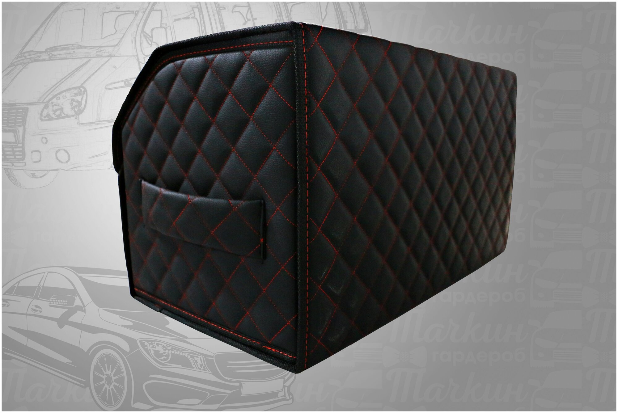 Органайзер для хранения для машины/Органайзер в багажник/Автоаксессуры 35х30х30 рисунок фигурный ромб черный строчка красная/саквояж