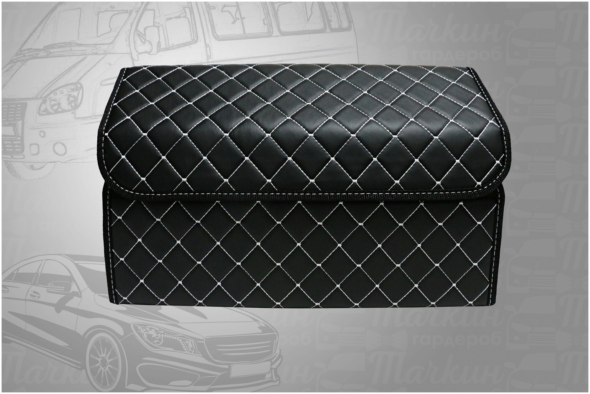Аксессуары для авто/Органайзер в багажник 50х30х30 рисунок фигурный ромб черный строчка черная