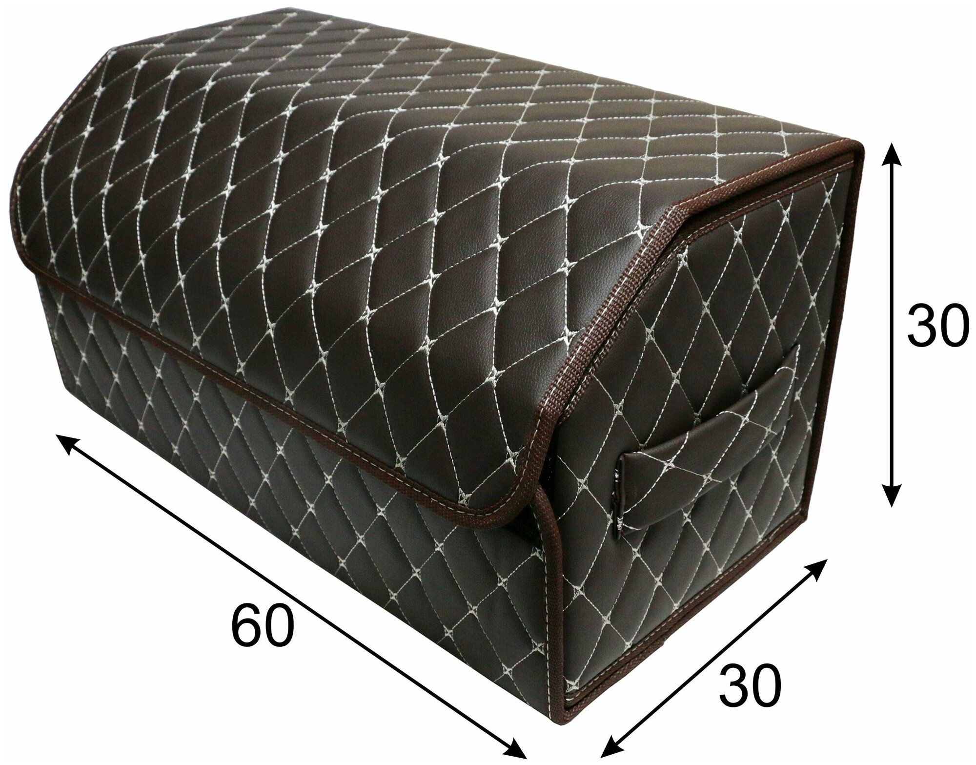 Высокий Саквояж из экокожи в багажник авто премиум-класса/ Органайзер 50*30*35 квадрат коричневый/ строчка коричневая/черн окант