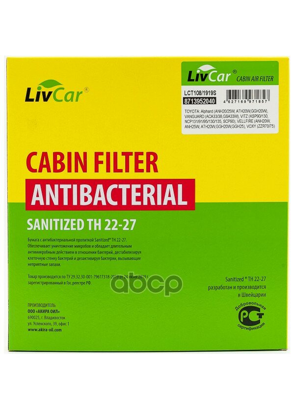 Салонный фильтр антибактериальный Toyota- Rav 4, Camry (40 50), Corolla, Land Cruiser 200 Auris, Avensis/CUK 1919 /8713950060 | LCT108/1919S интересное: