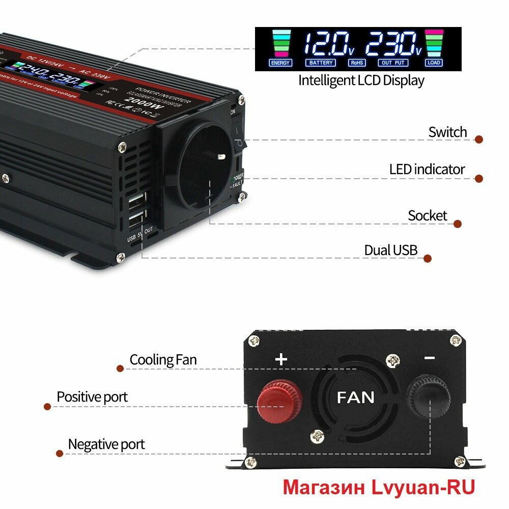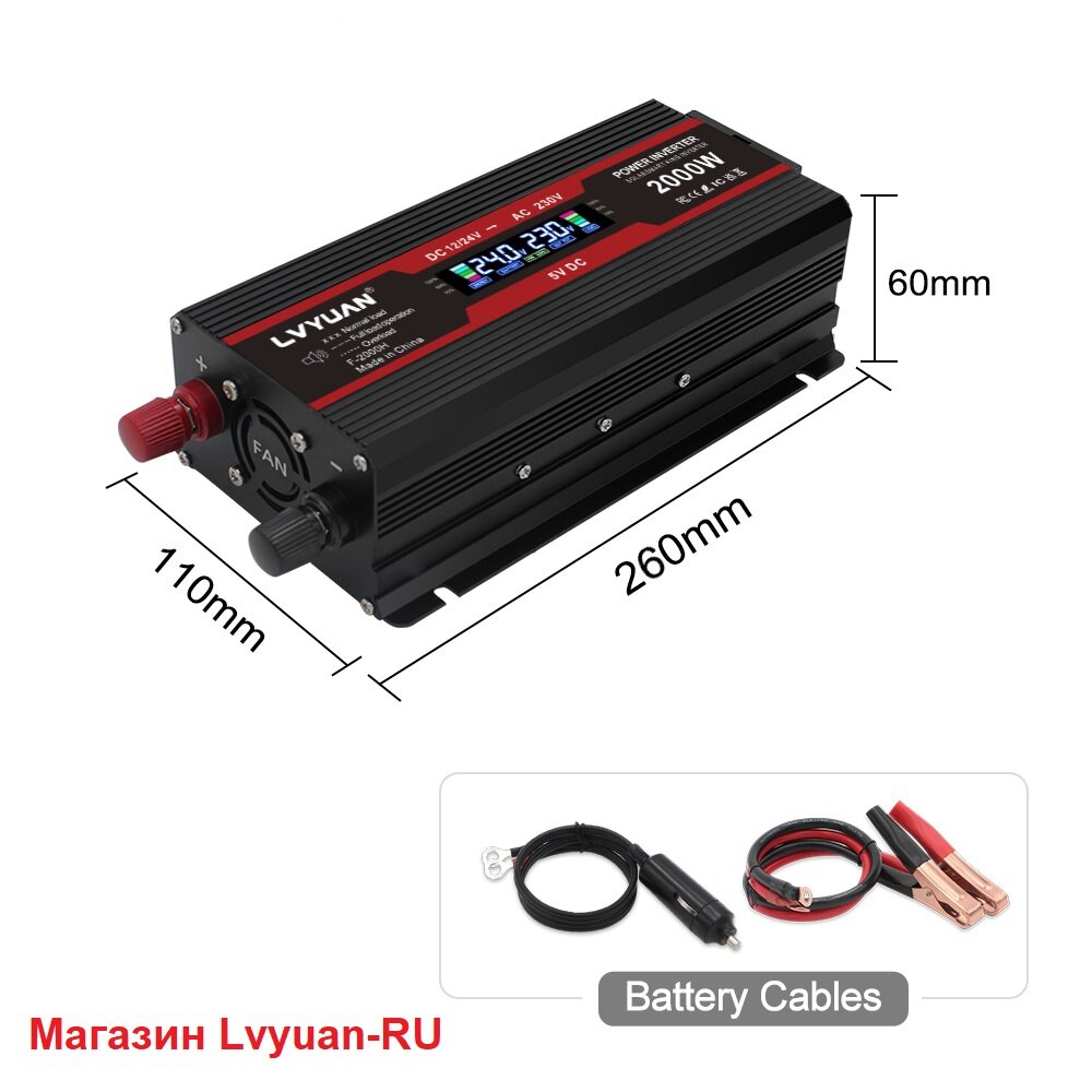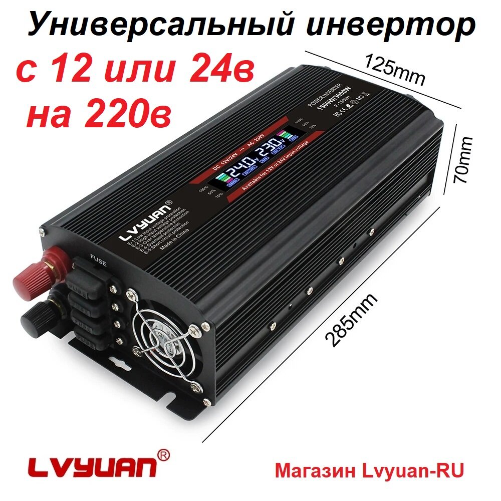 Универсальный преобразователь напряжения с 12В или 24в на 220В инвертор 1000вт Lvyuan-2000 интересное: