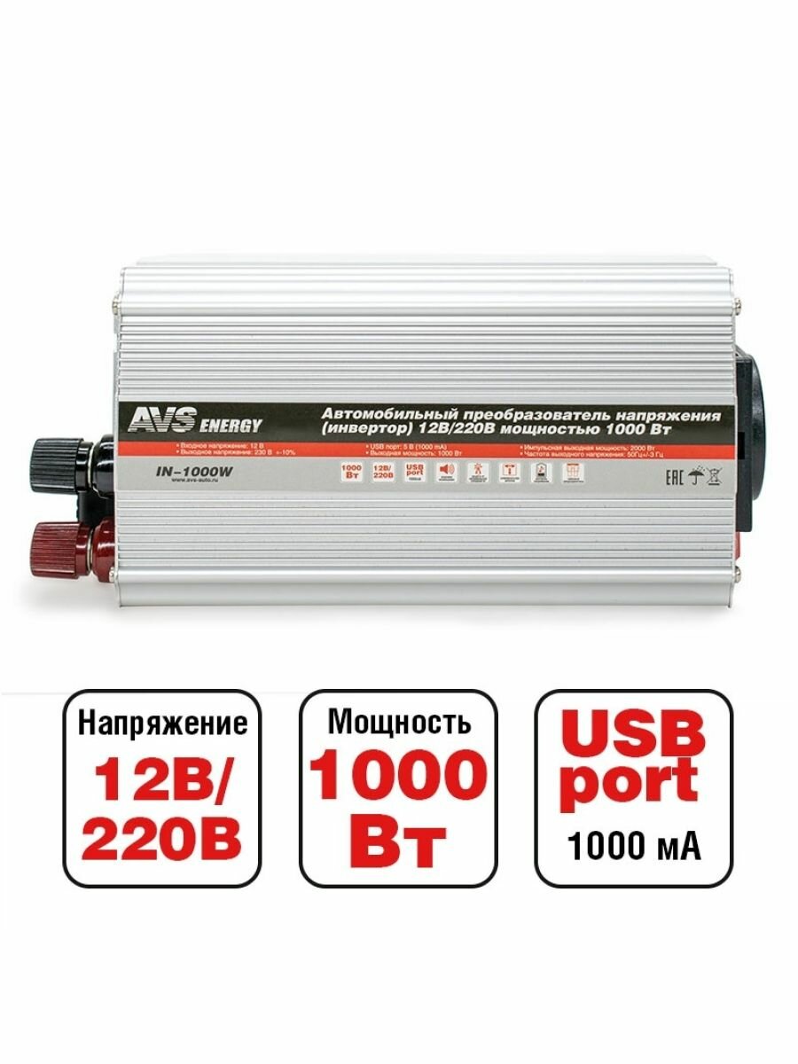 Купить Преобразователь малый 12-220V 1000mA IN-1000W AVS
