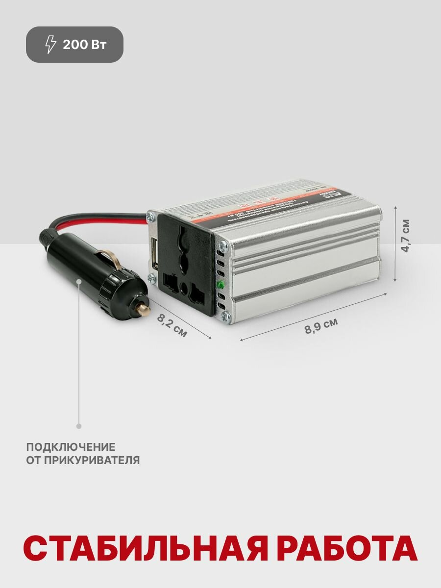 Инвертор преобразователь напряжения 12-220 автомобильный, черный