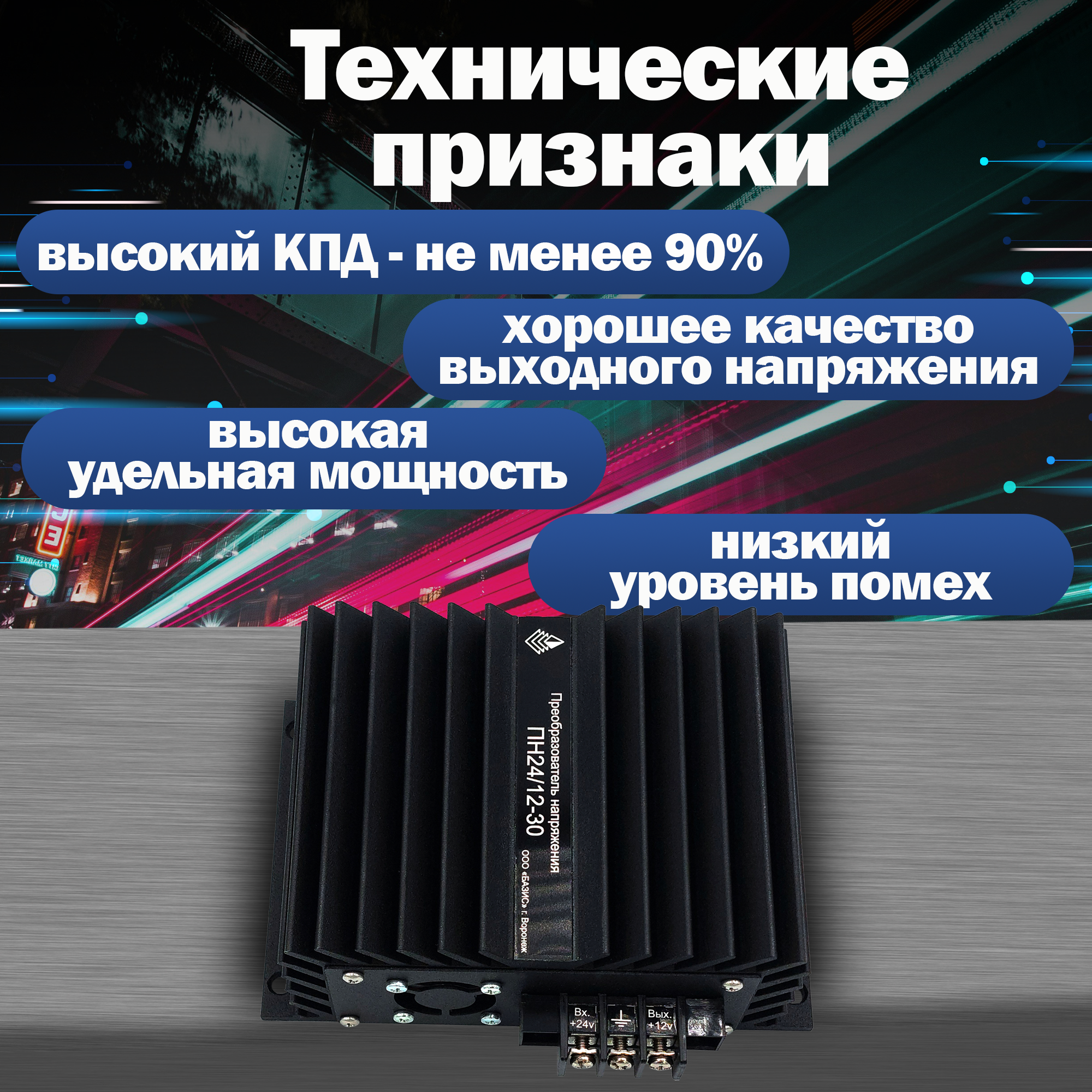 Понижающий автомобильный преобразователь напряжения ООО "Базис", модель 24-12-30 интересное: