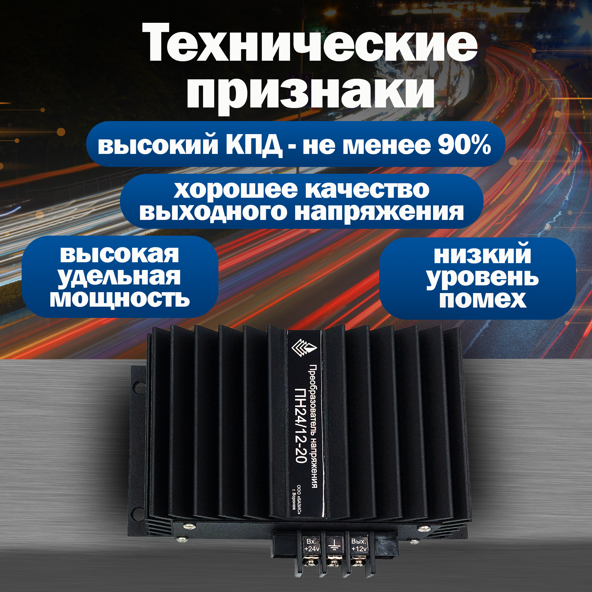 Понижающий автомобильный преобразователь напряжения ООО "Базис", модель 24-12-20 интересное: