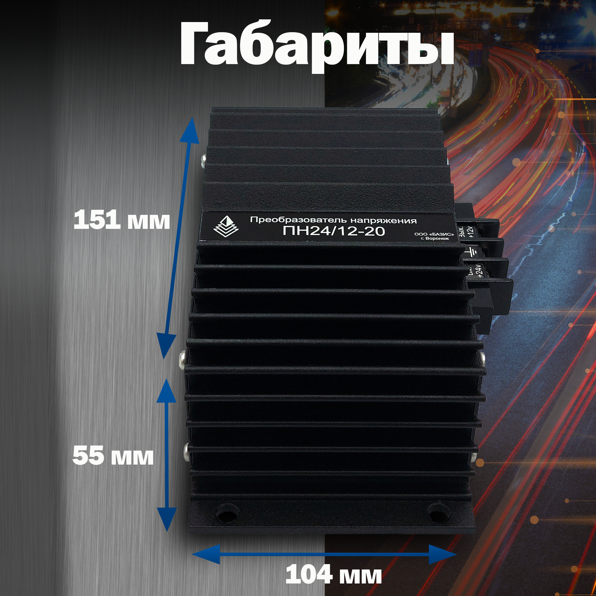 Понижающий автомобильный преобразователь напряжения ООО "Базис", модель 24-12-12