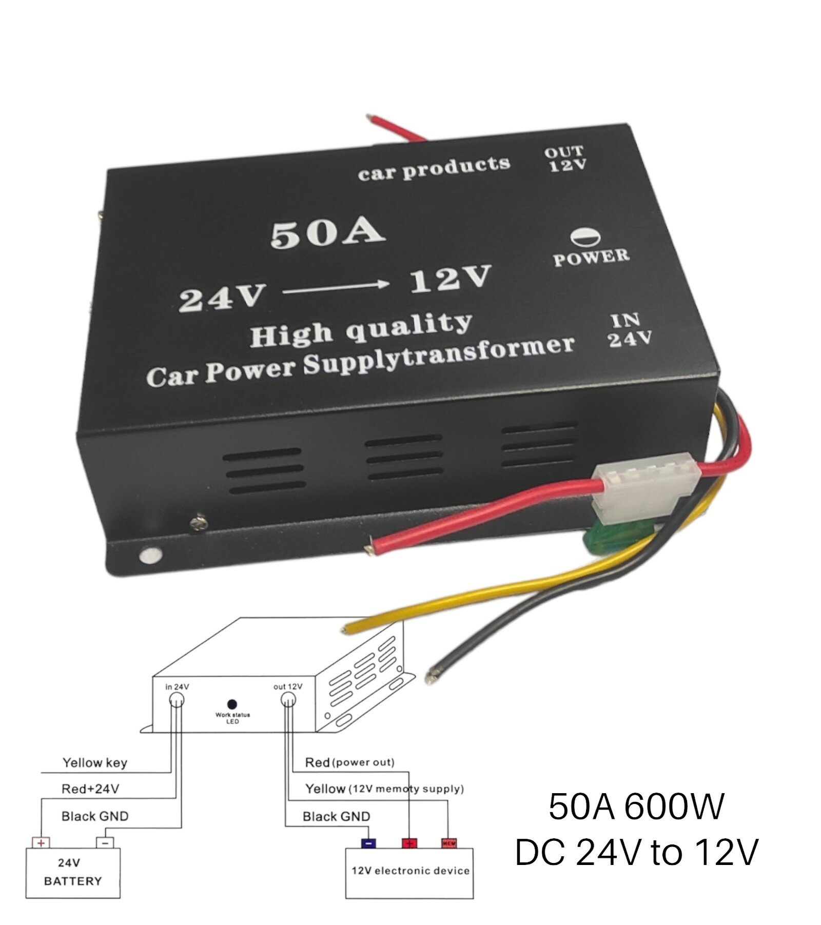 Преобразователь напряжения с 24В на 12В 50A интересное: