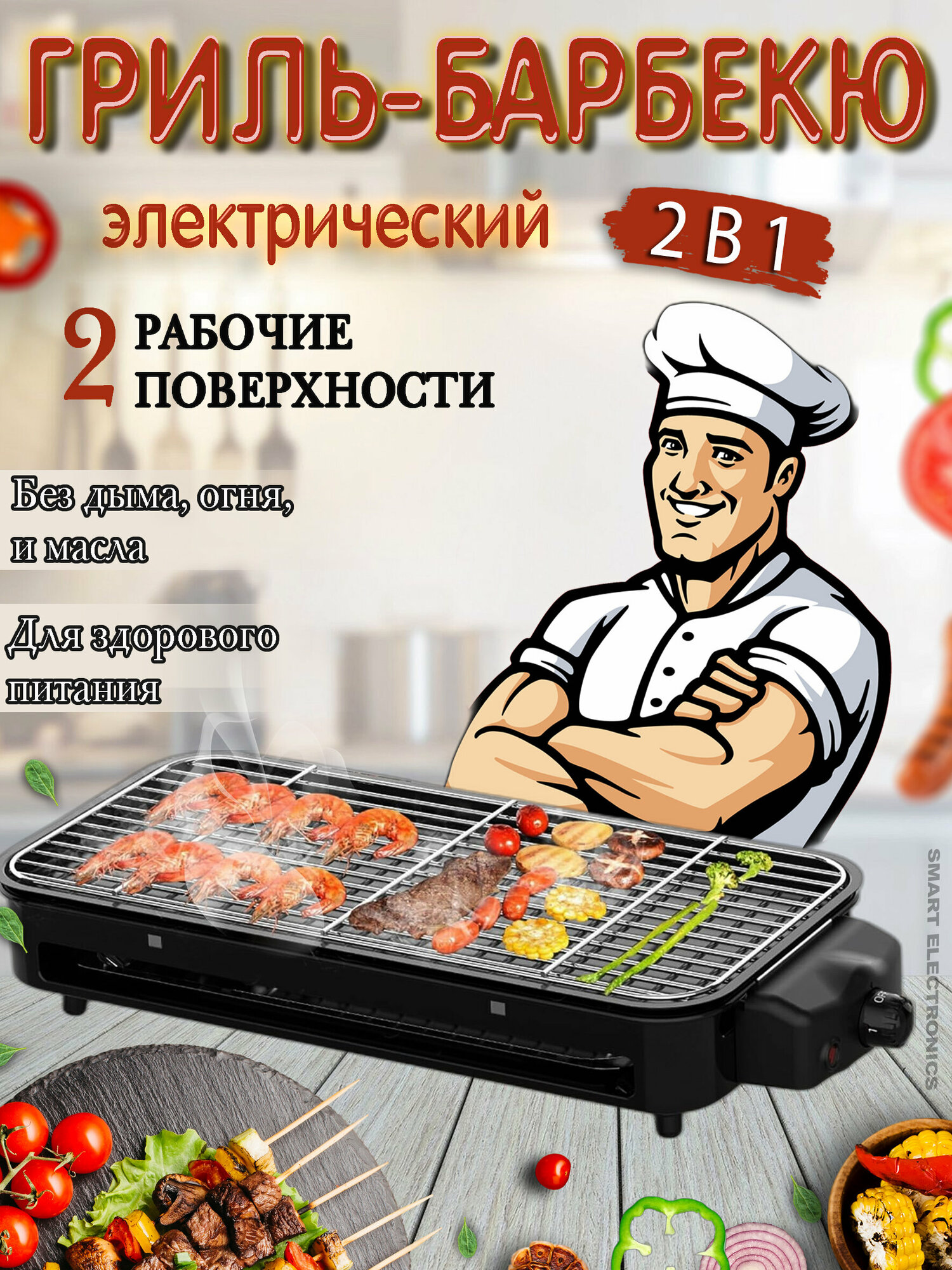 Электрогриль, гриль электрический для барбекю, настольный, без дыма, встроенная система жарки и запекания, антипригарное покрытие, черный интересное:
