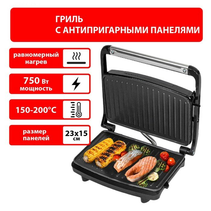 Гриль электриеский jvc JK-MB025, 750 Вт, антипригарное покрытие, 23х15 см, чёрный интересное: