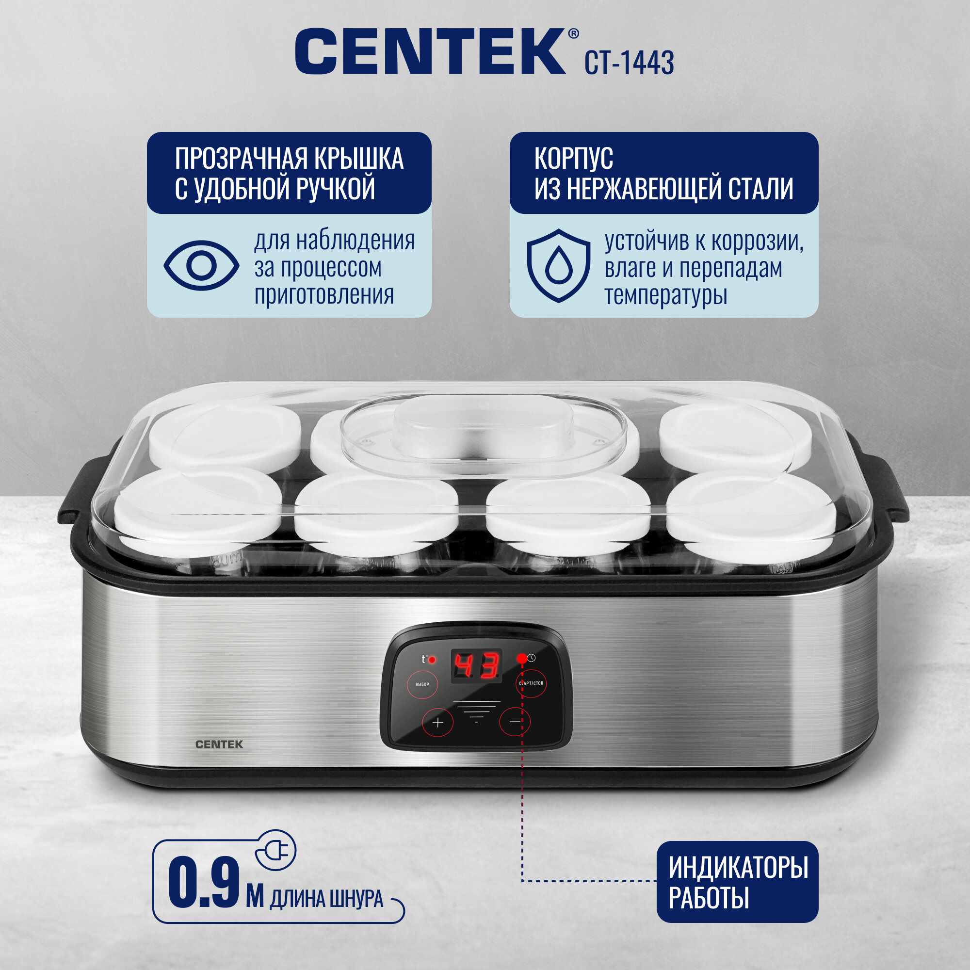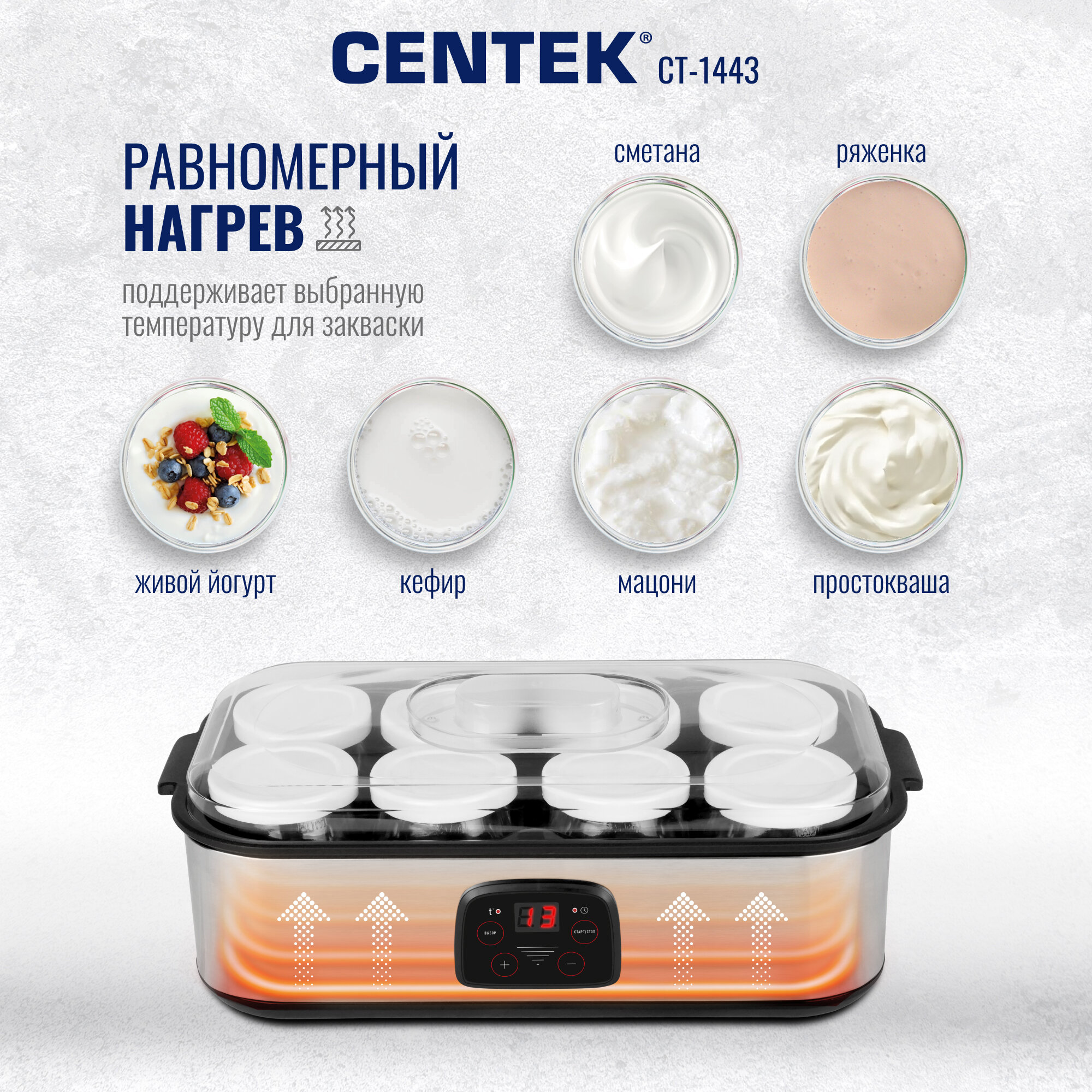 Купить Йогуртница CENTEK CT-1443 - 30 Вт/ 8 баночек/ стекло/ таймер