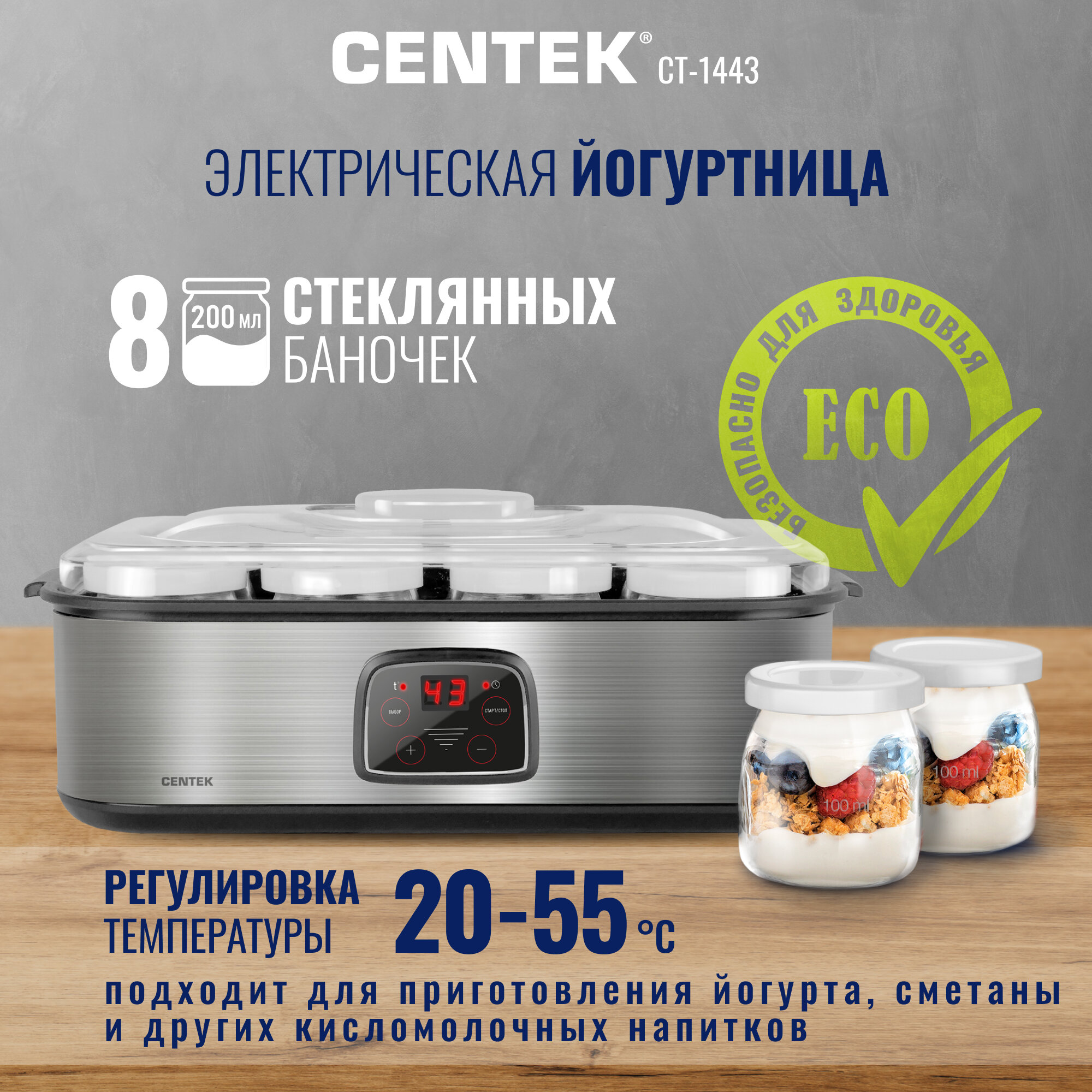 Йогуртница CENTEK CT-1443 - 30 Вт/ 8 баночек/ стекло/ таймер интересное:
