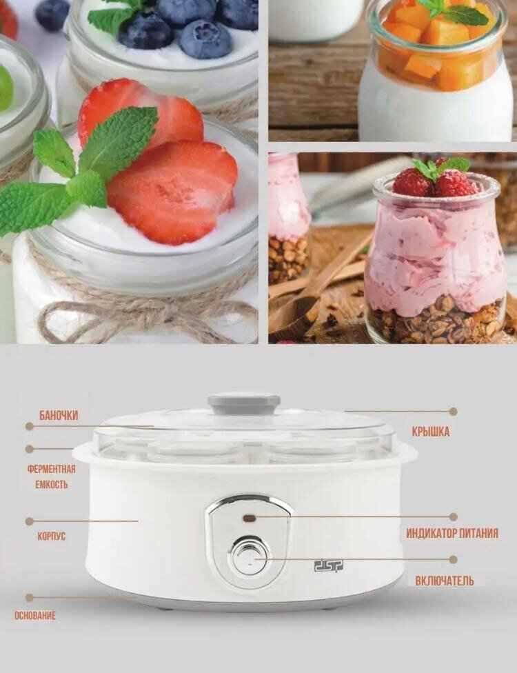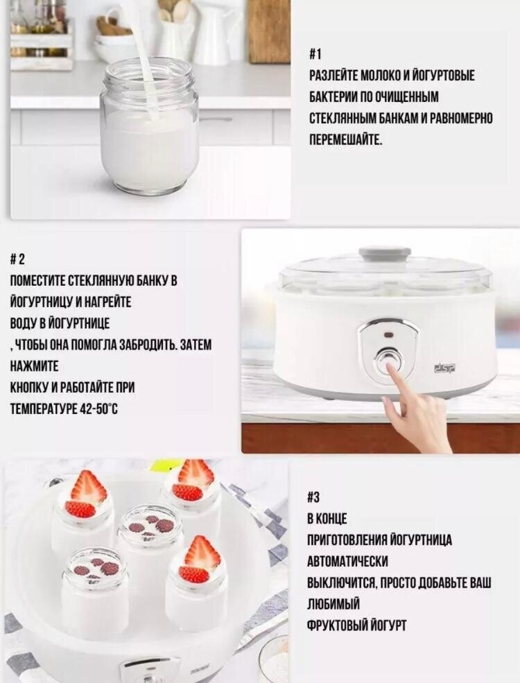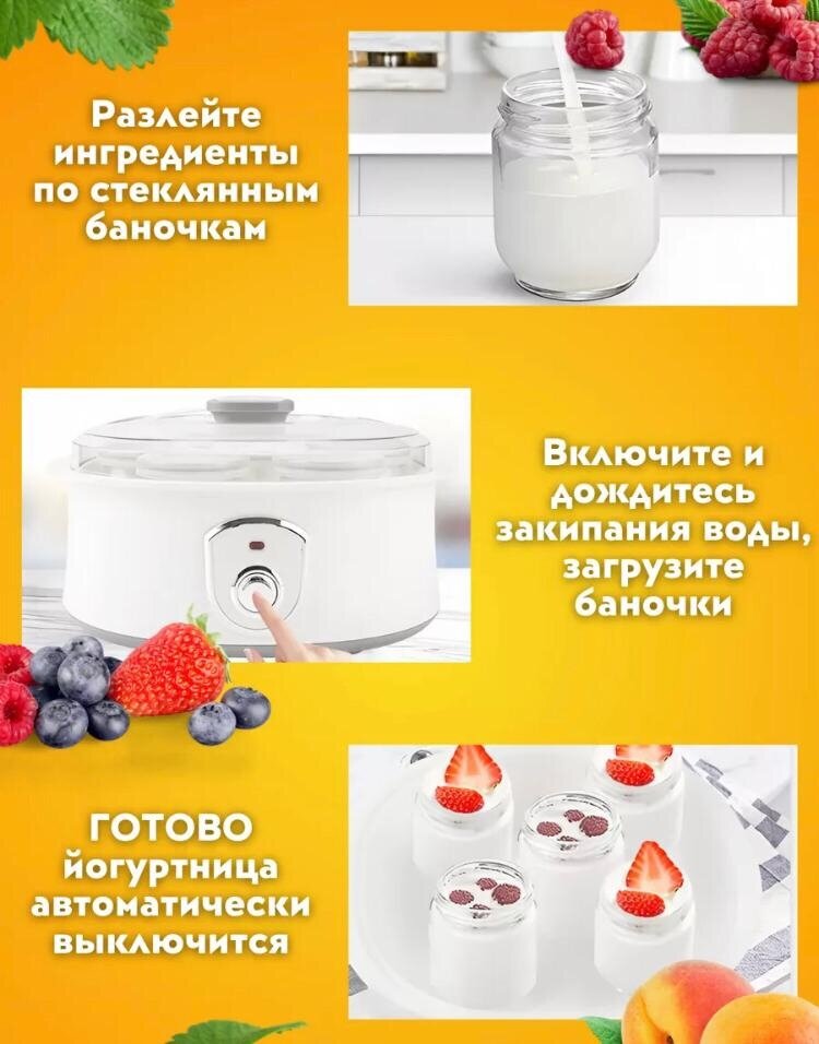 Высококачественная электрическая Йогуртница , Предназначена для быстрого и полезного приготовления йогурта с фруктами интересное: