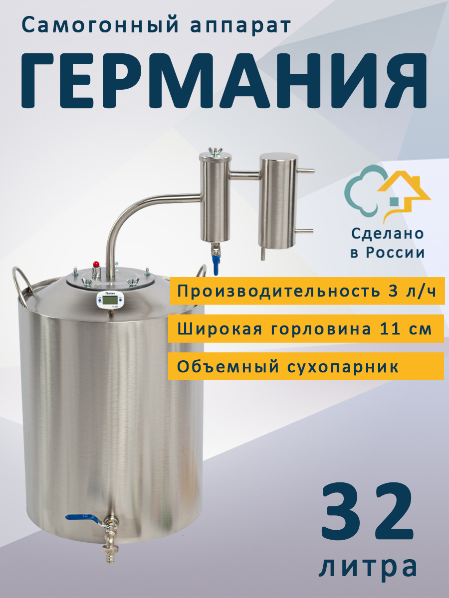 Самогонный аппарат с сухопарником Германия, 32 л / Недорогой бытовой дистиллятор интересное: