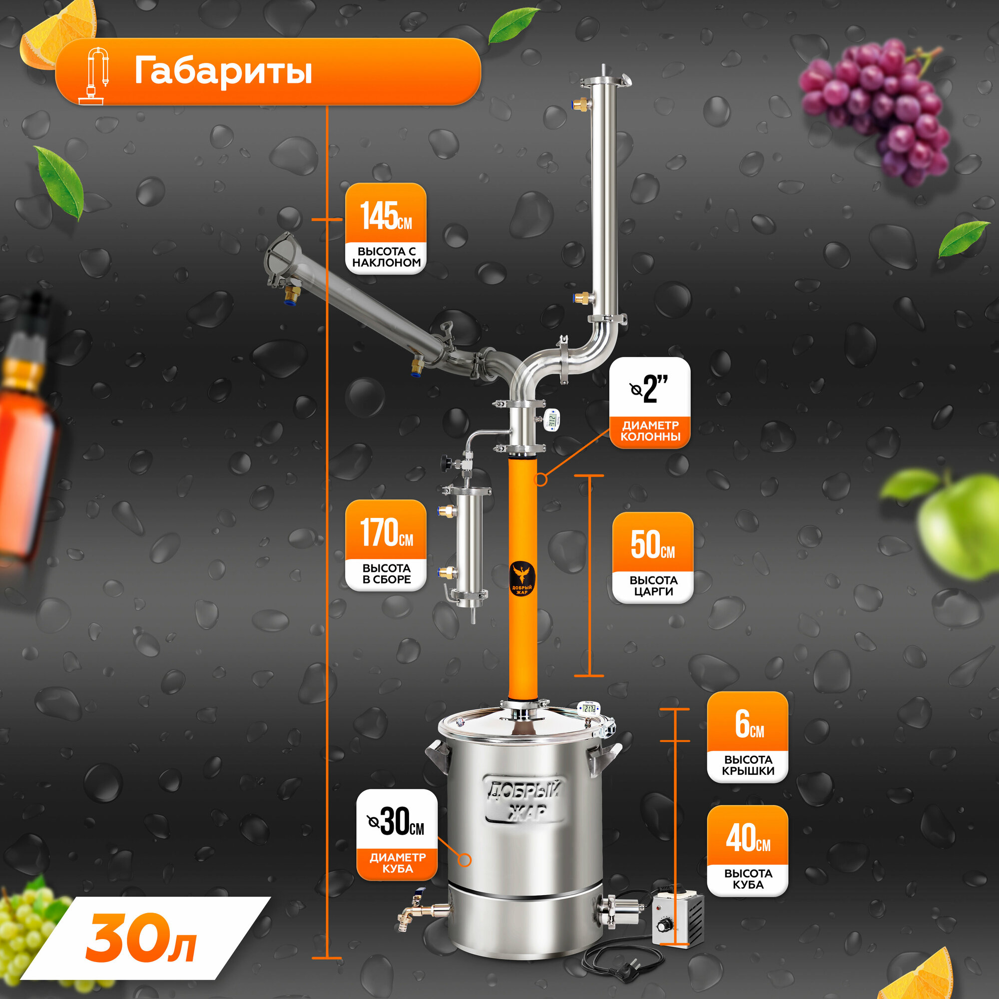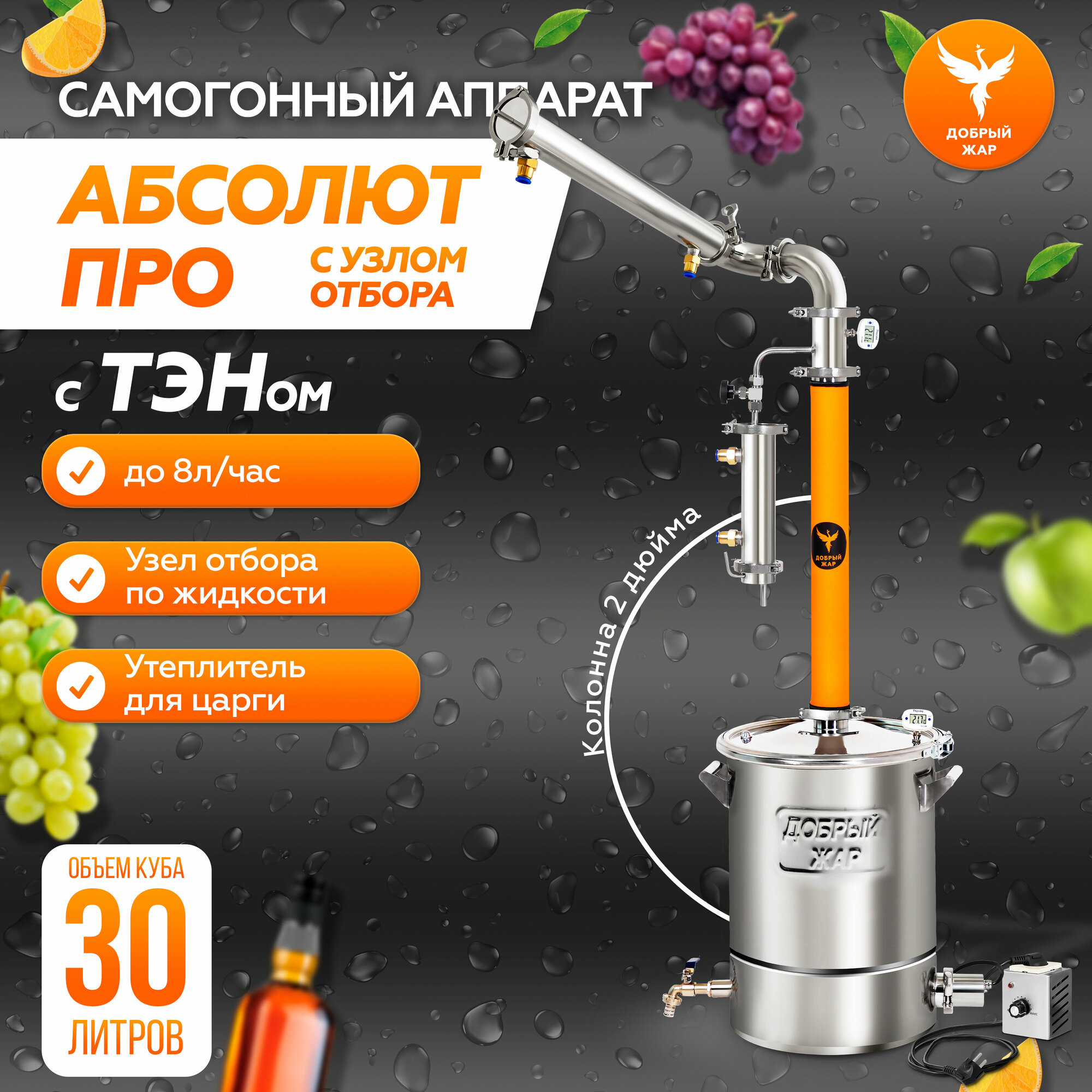 Самогонный аппарат Абсолют Про 30 литров, колонна с узлом отбора, электрический дистиллятор с ТЭН интересное: