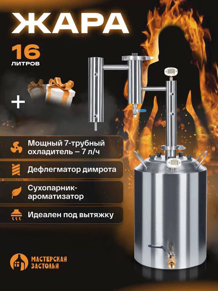 Ниже Вы можете прочитать отзывы на Самогонный аппарат жара 16л, Мастерская застолья, ознакомится с подробными характеристиками, посмотреть интересные обзоры и фотографии на Самогонный аппарат жара 16л, Мастерская застолья.
