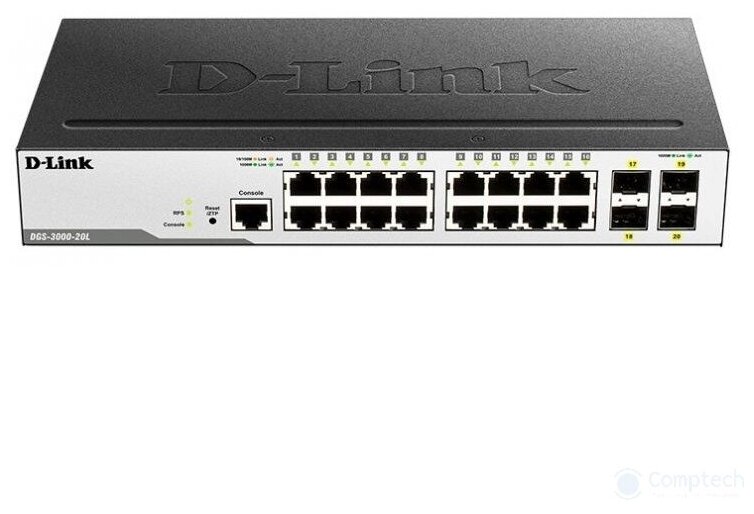Коммутатор D-link DGS-3000-20L, управляемый, Количество портов: 16x1 Гбит/с (DGS-3000-20L/B1A)