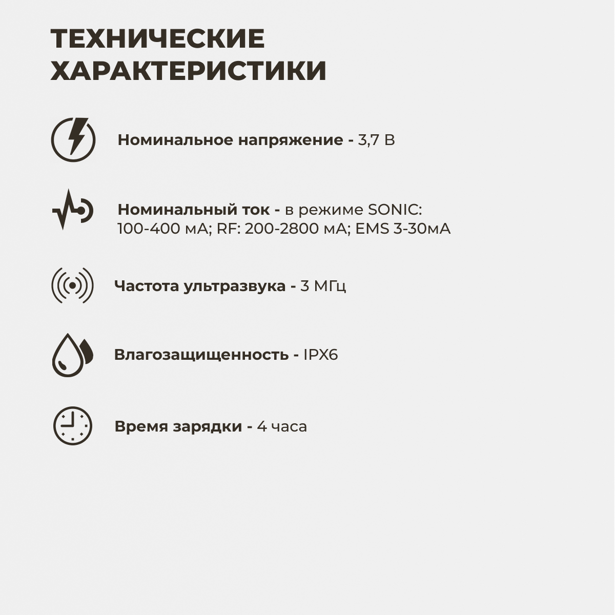 | Принцип работы | RF-лифтинг / миостимуляция / ультразвук |