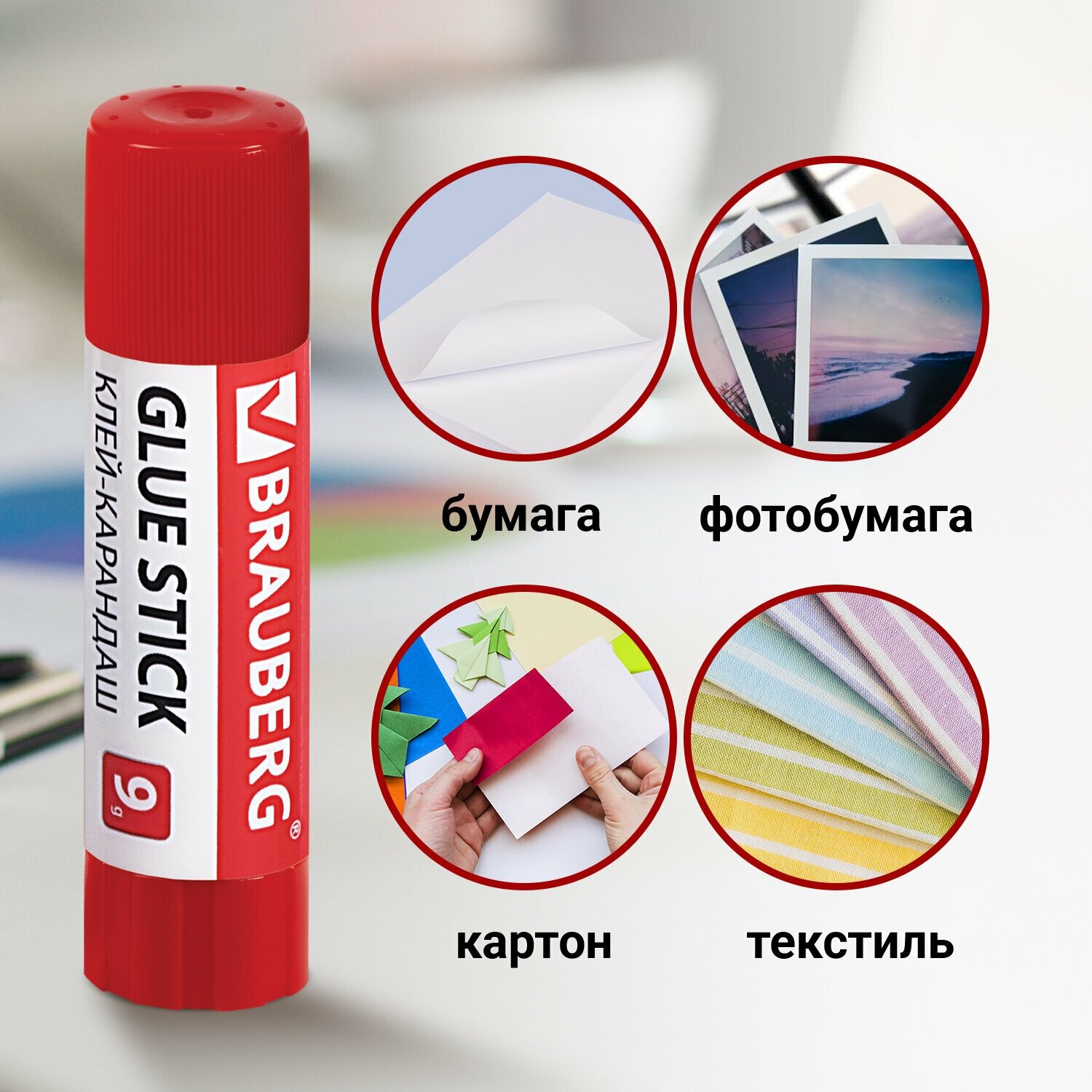 Купить Клей-карандаш канцелярский для бумаги и картона 9 г Brauberg, 3 штуки, 271305