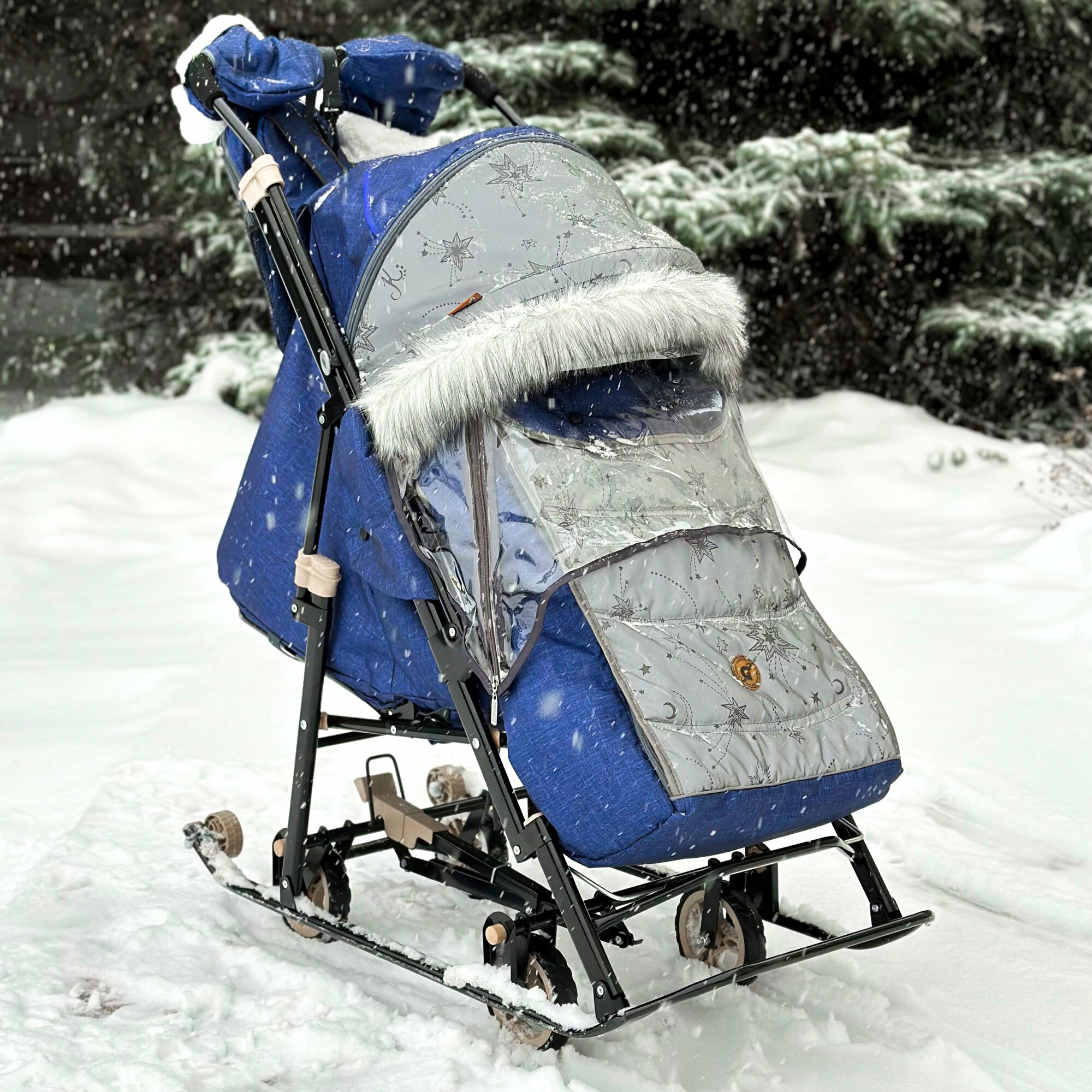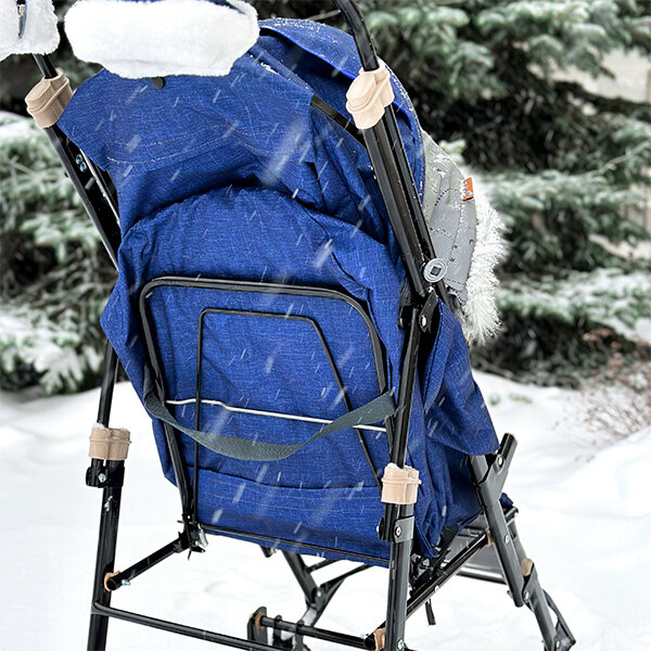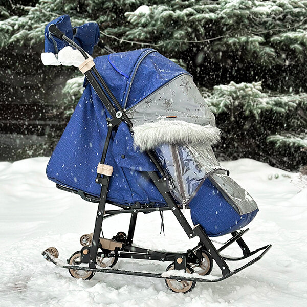 Купить Санки-коляска Galaxy Glory Gloss Лен Синие, Светоотражающая Ткань