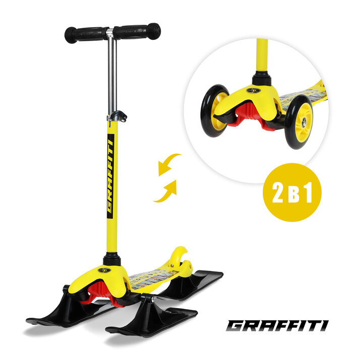 Самокат-снегокат 2 в 1 GRAFFITI "Вперед", цвет желтый, черный интересное: