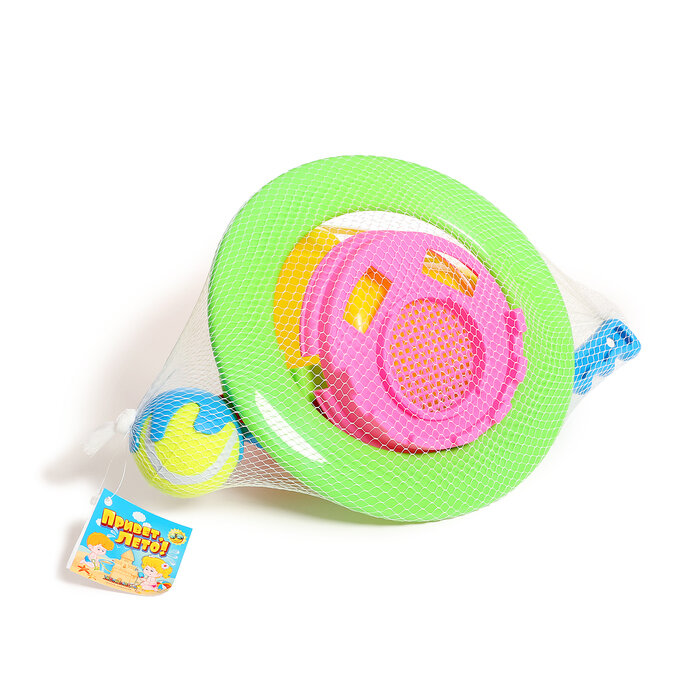 Купить Песочный набор №2 «Пончик»: ведро, сито, совок, грабли, бросатель с мячом, кольцо, микс