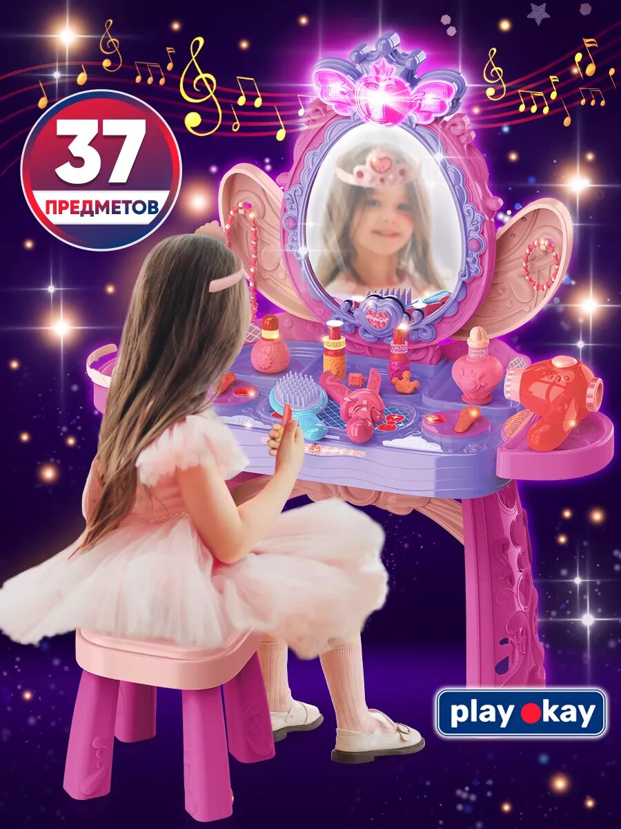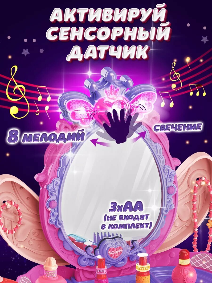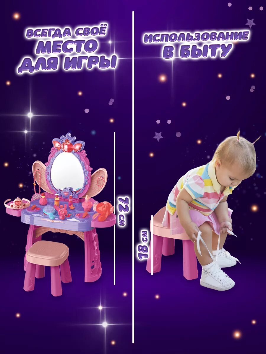 Туалетный столик для девочек с зеркалом и стулом малиновый