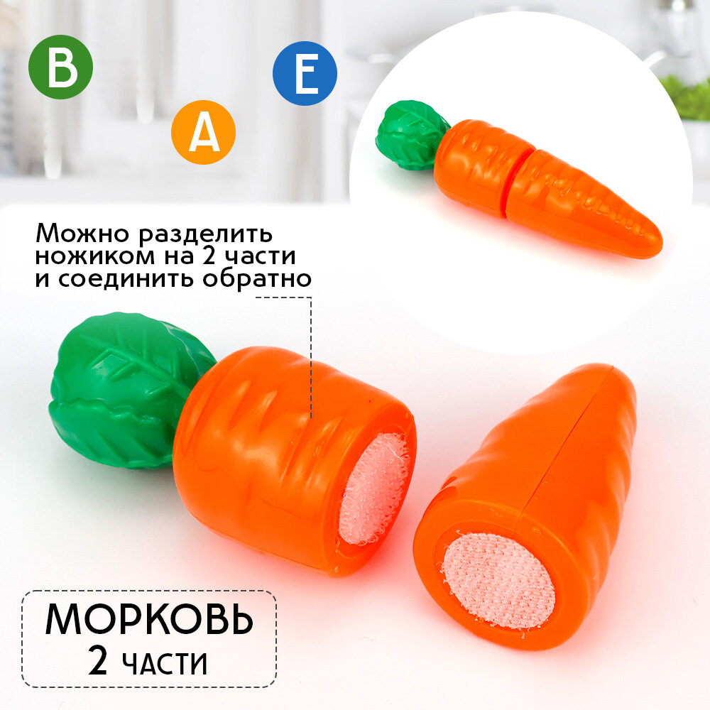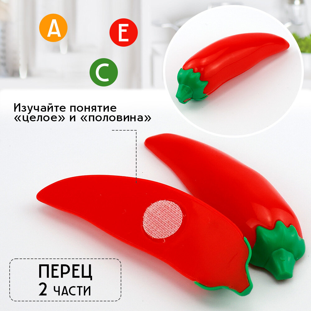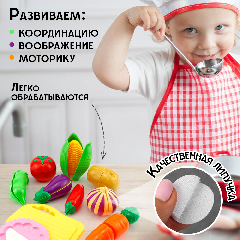 Овощи на липучках, снимается кожура, 12 полезных овощей 5 столовых приборов +доска