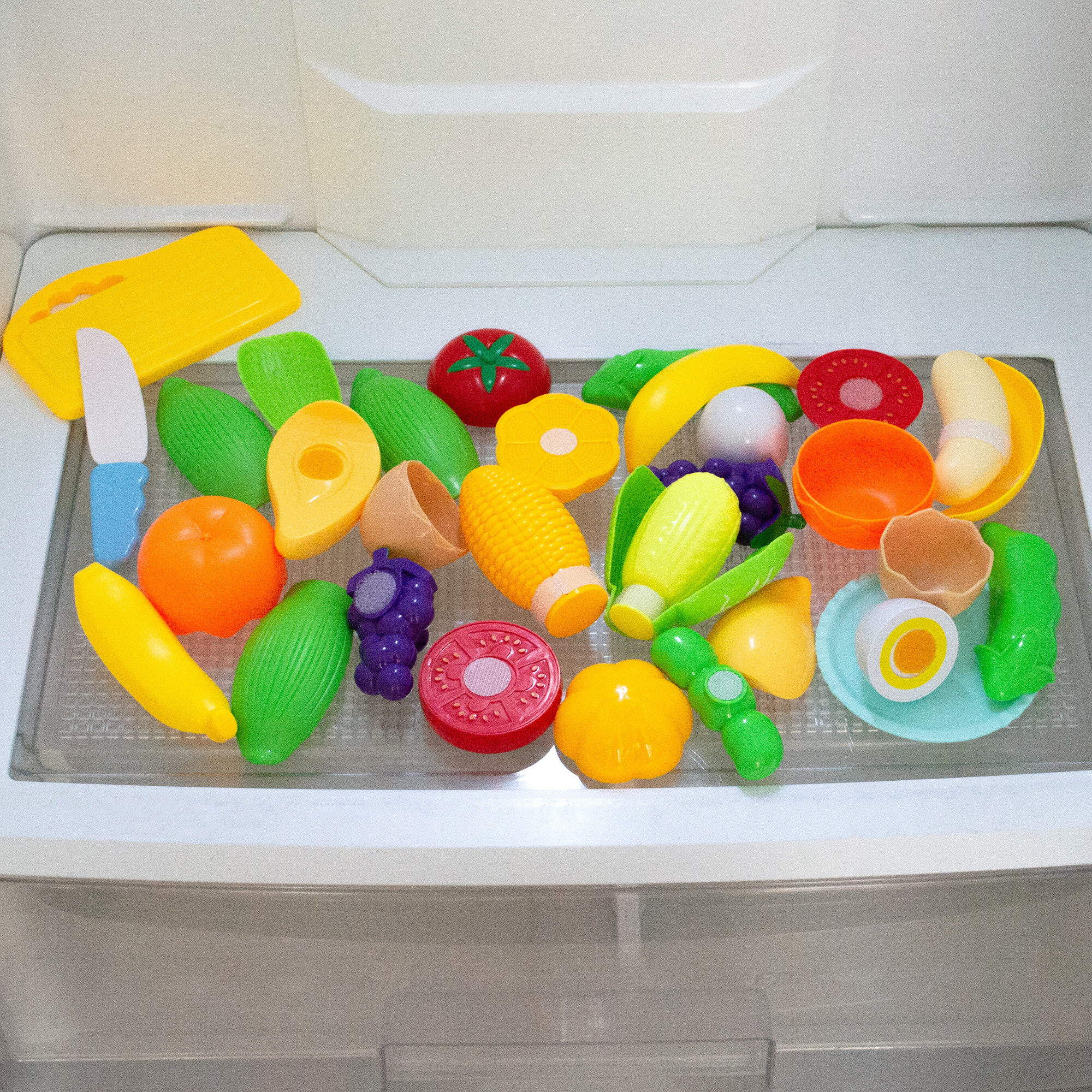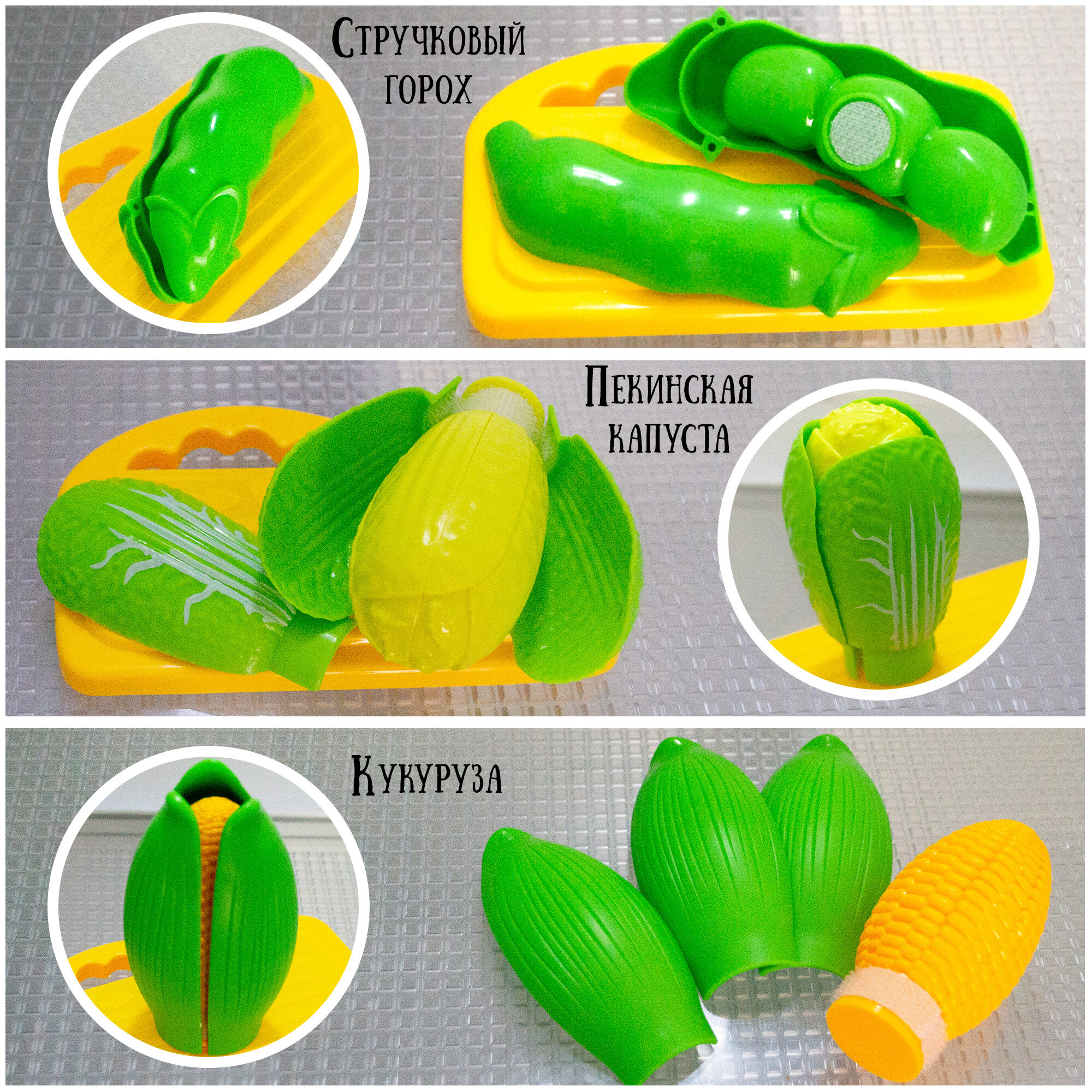 | Комплектация | Рыба 1шт. Мясо 1шт. Яйцо 1шт. Картофель 1шт. Морковь 1шт. Помидор 1шт. Горох 1шт. Пекинская капуста 1шт. Банан 1шт. Апельсин 1шт. Виноград 1шт. Тарелочка 1шт. Разделочная досочка 1шт. Нож 1шт. |