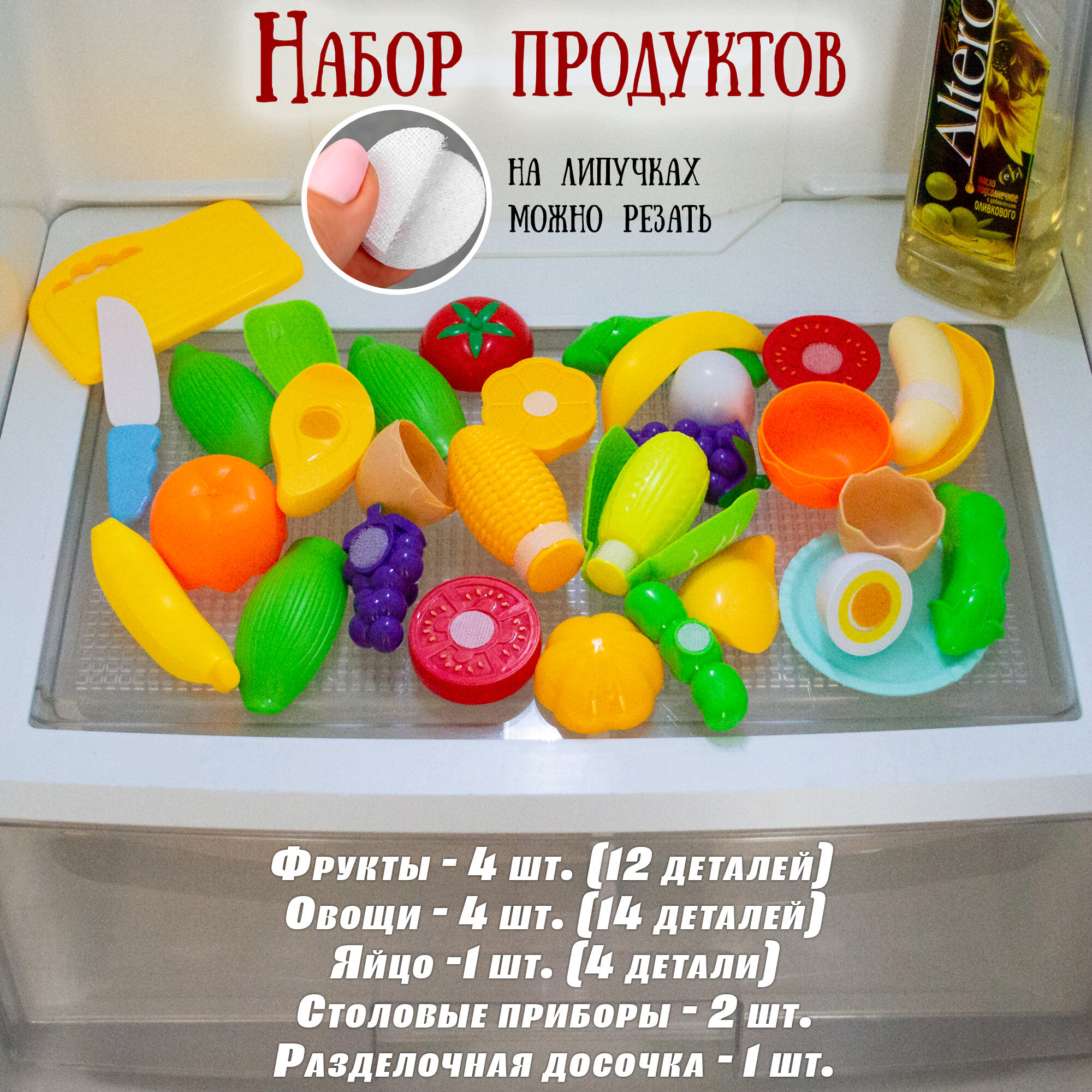 Овощи на липучках, снимается кожура, 12 полезных овощей 5 столовых приборов +доска