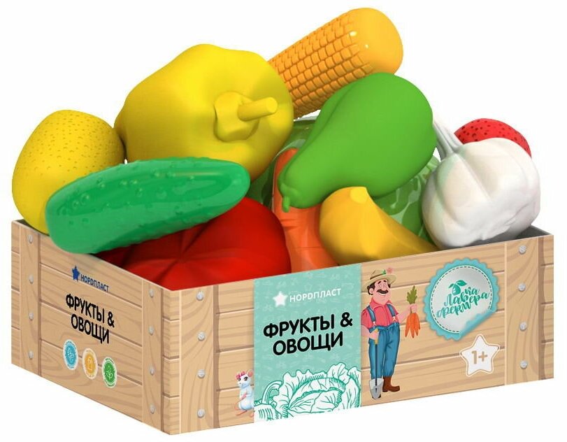 Купить Игровой набор нордпласт Фрукты и овощи, большой, в ящике, 12 предметов Н-437/1
