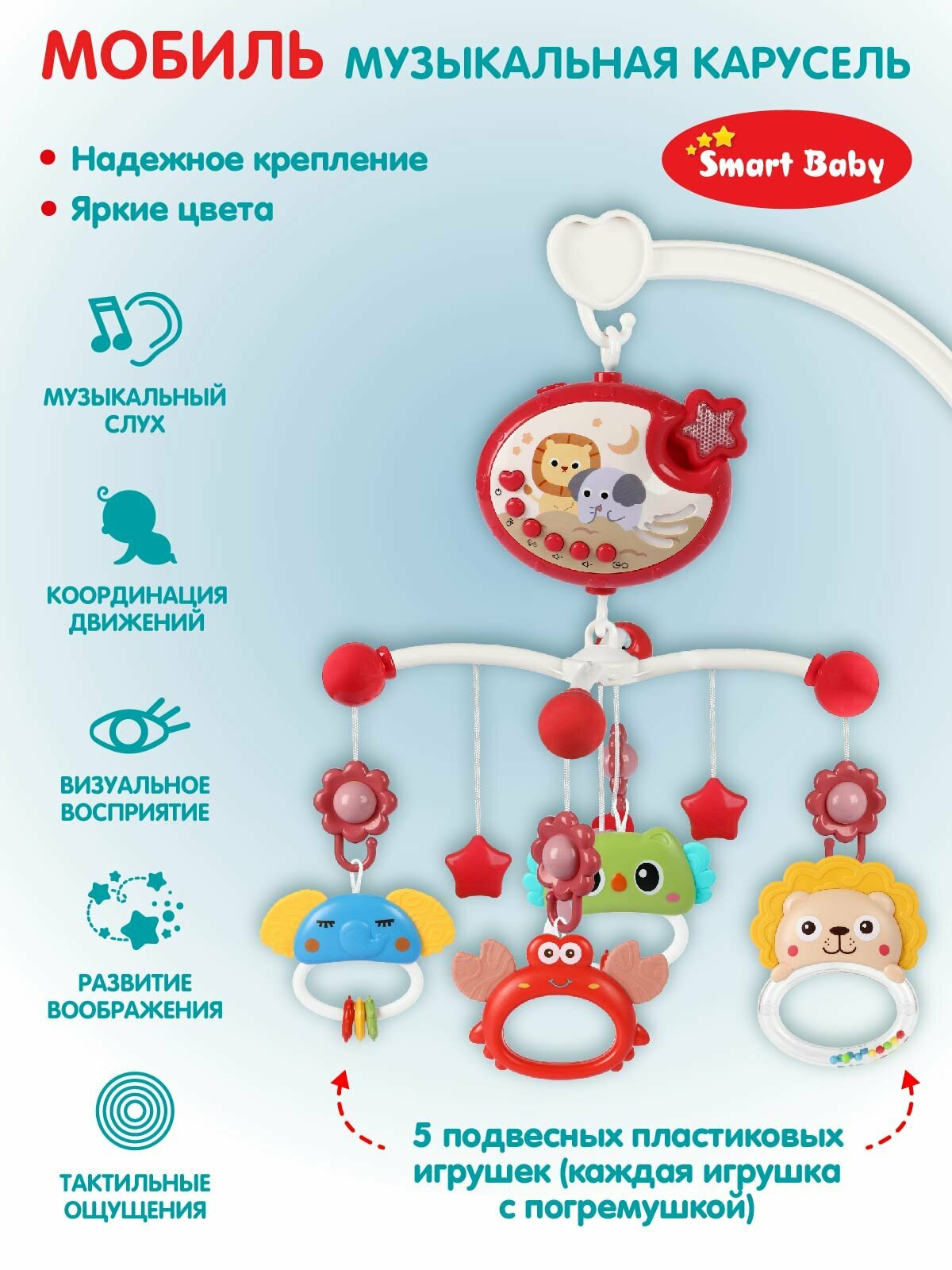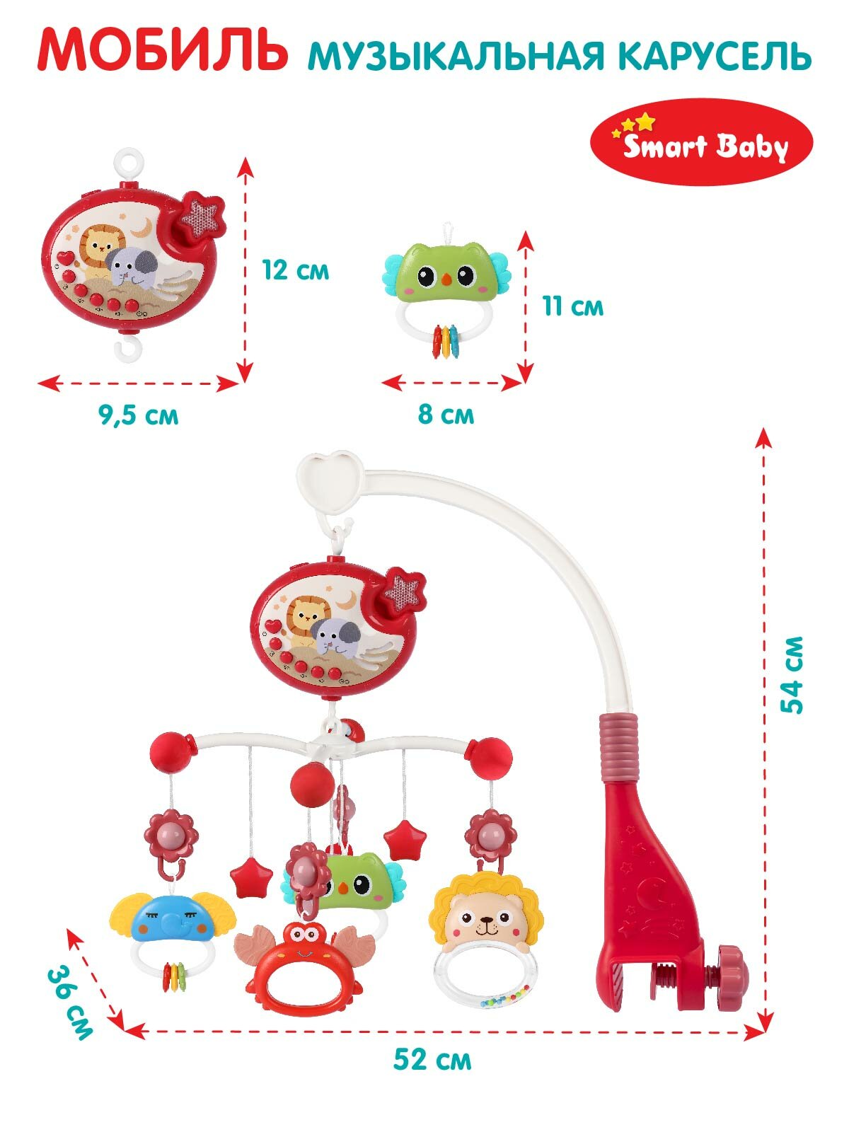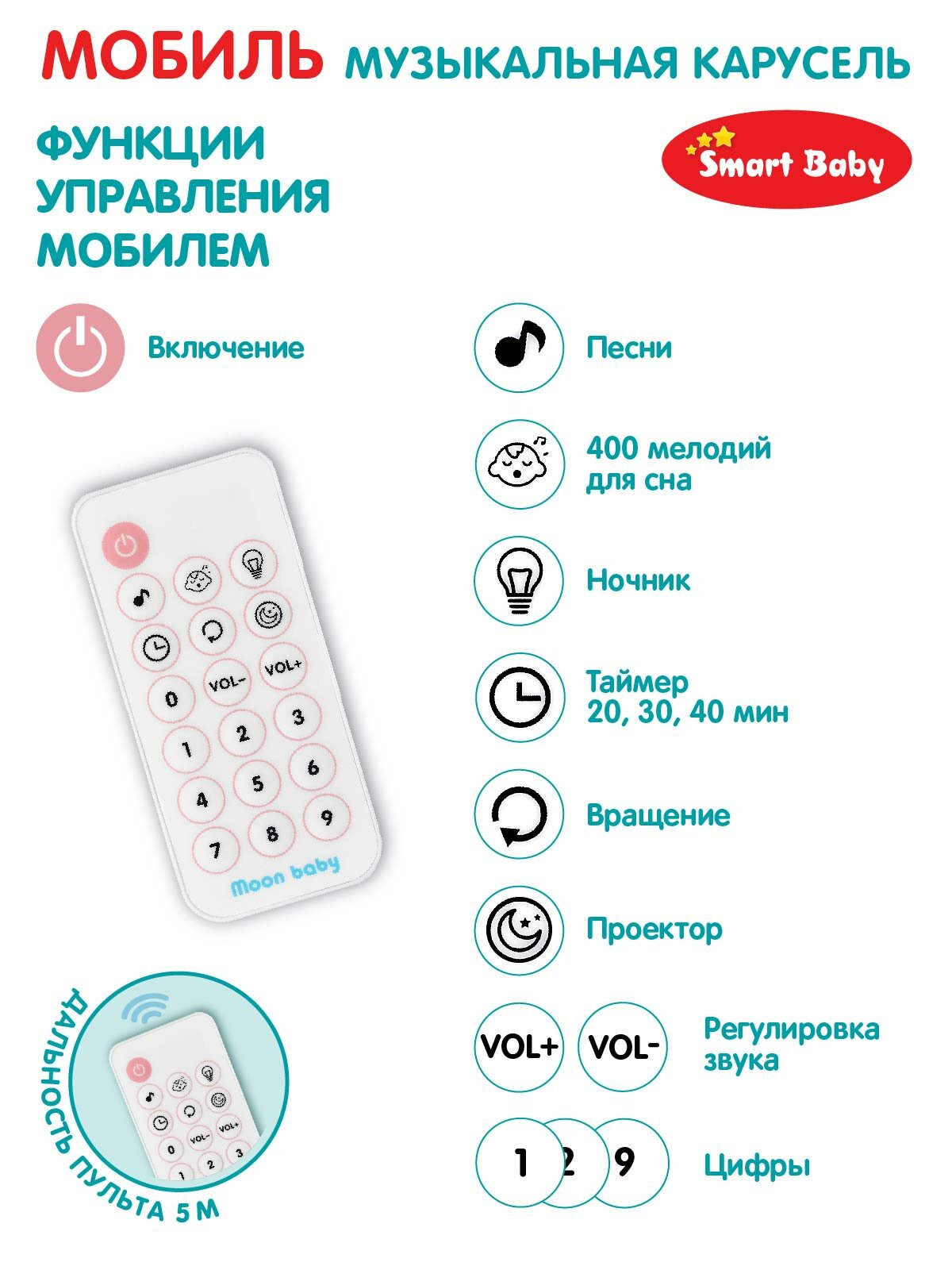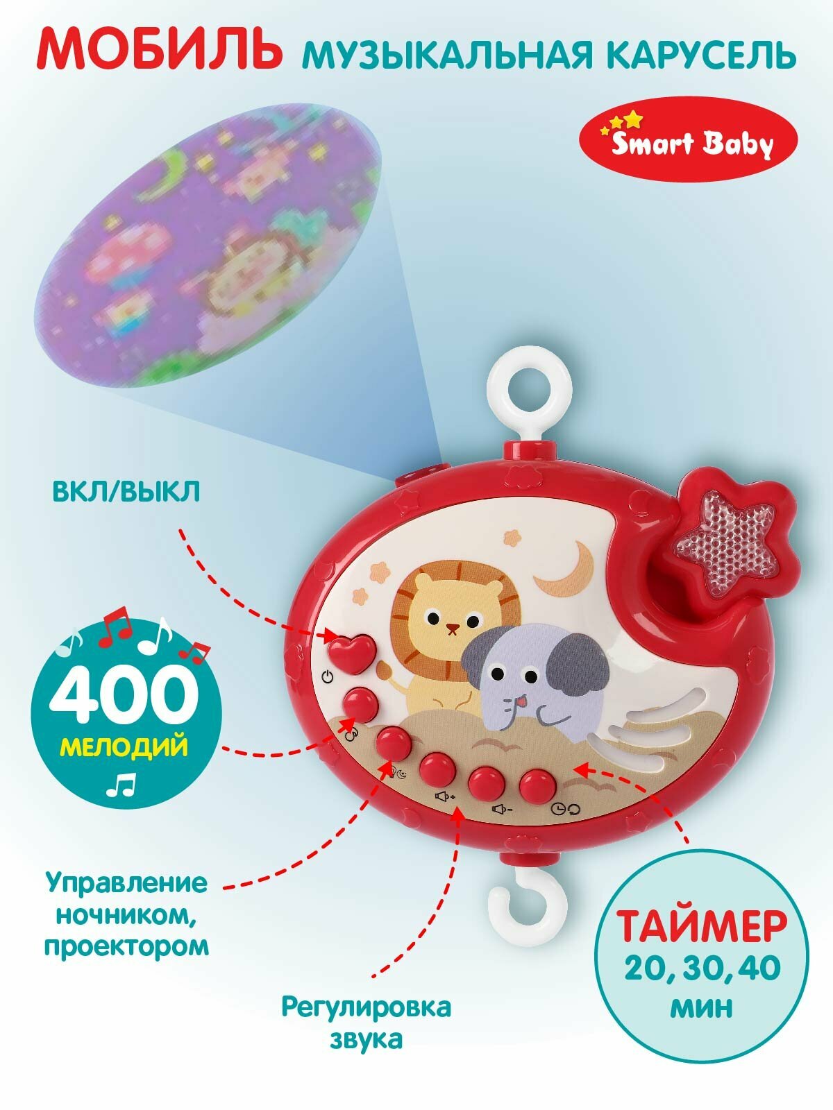 Музыкальная карусель, мобиль ТМ Джамбо Тойз, 5 подвесных игрушек-погремушек, регулировка звука, 400 мелодий, проектор/ночник/таймер, JB0334064 интересное: