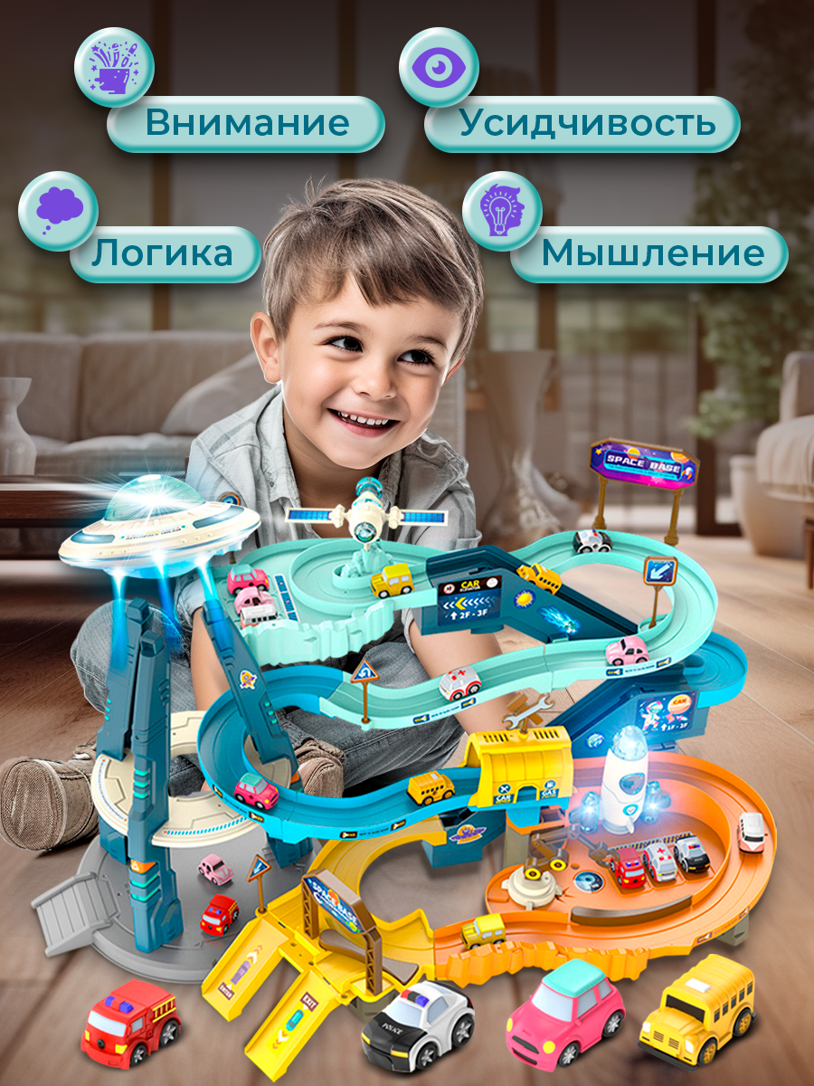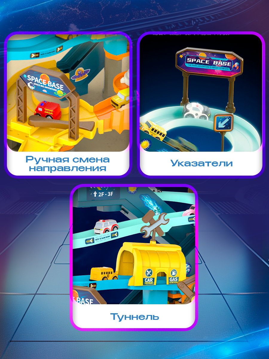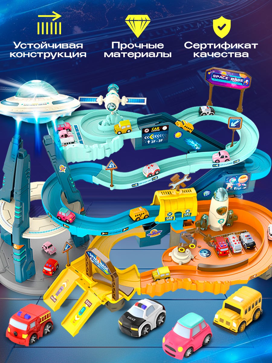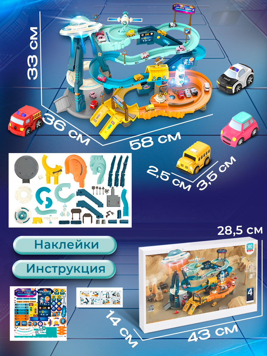 СохранитьМногоуровневая парковка для машинок WiMi космическая станция, гоночный трек и паркинг, интерактивная ракета и машинки интересное:
